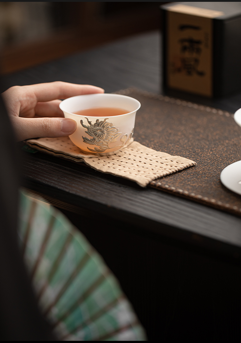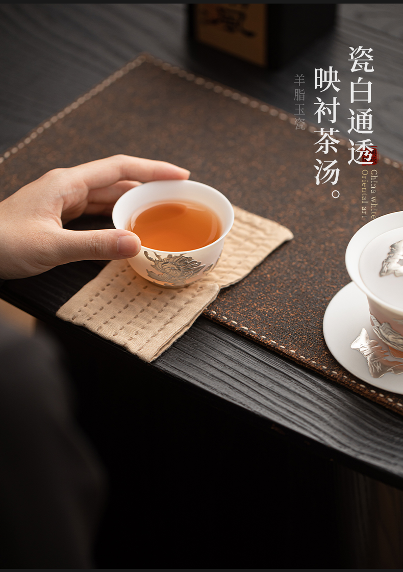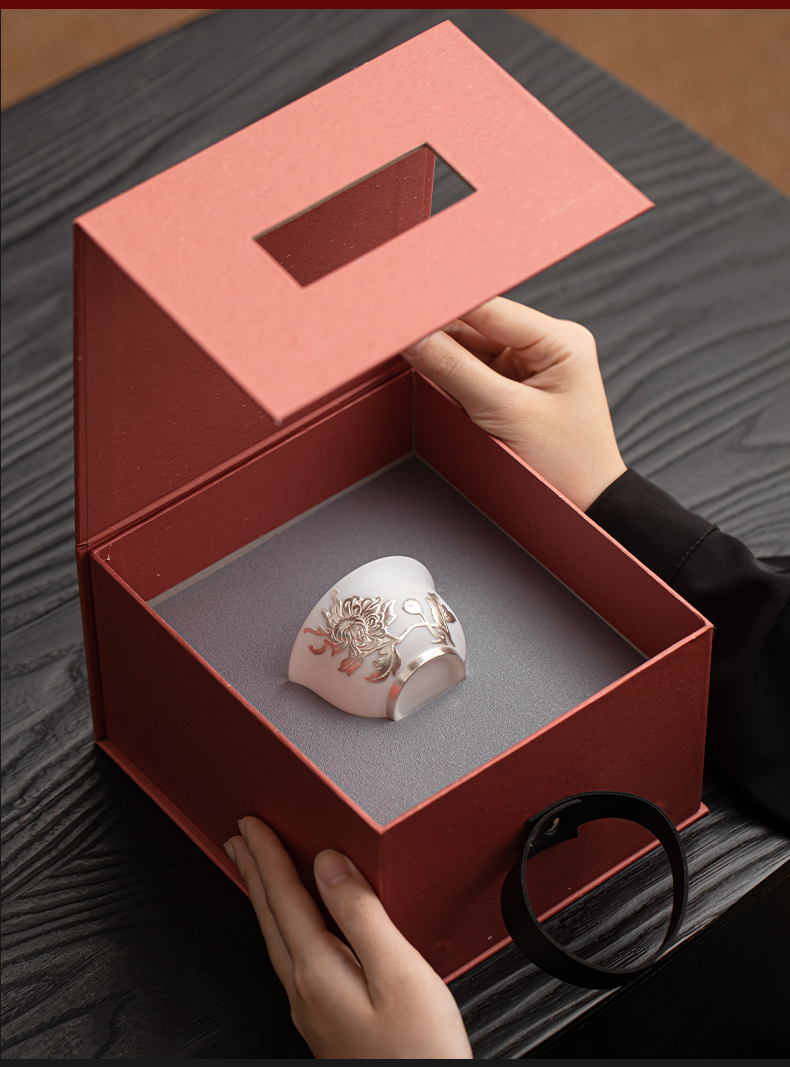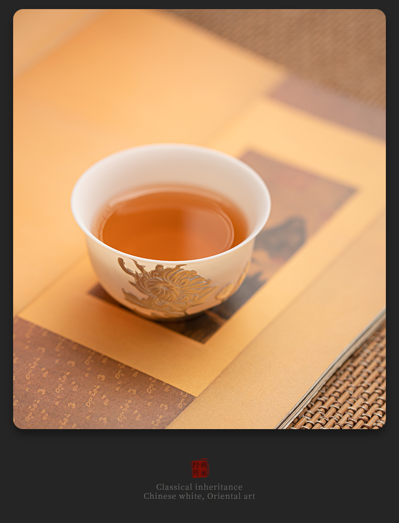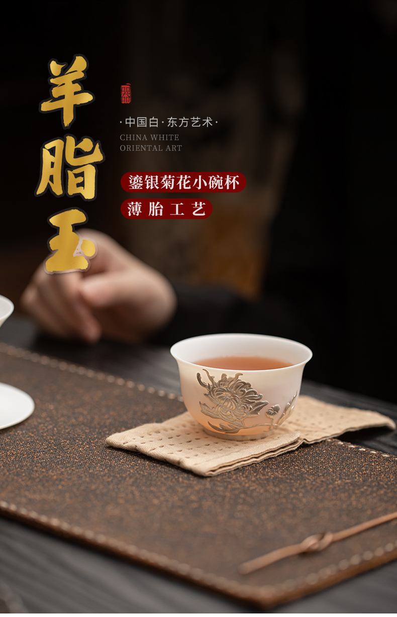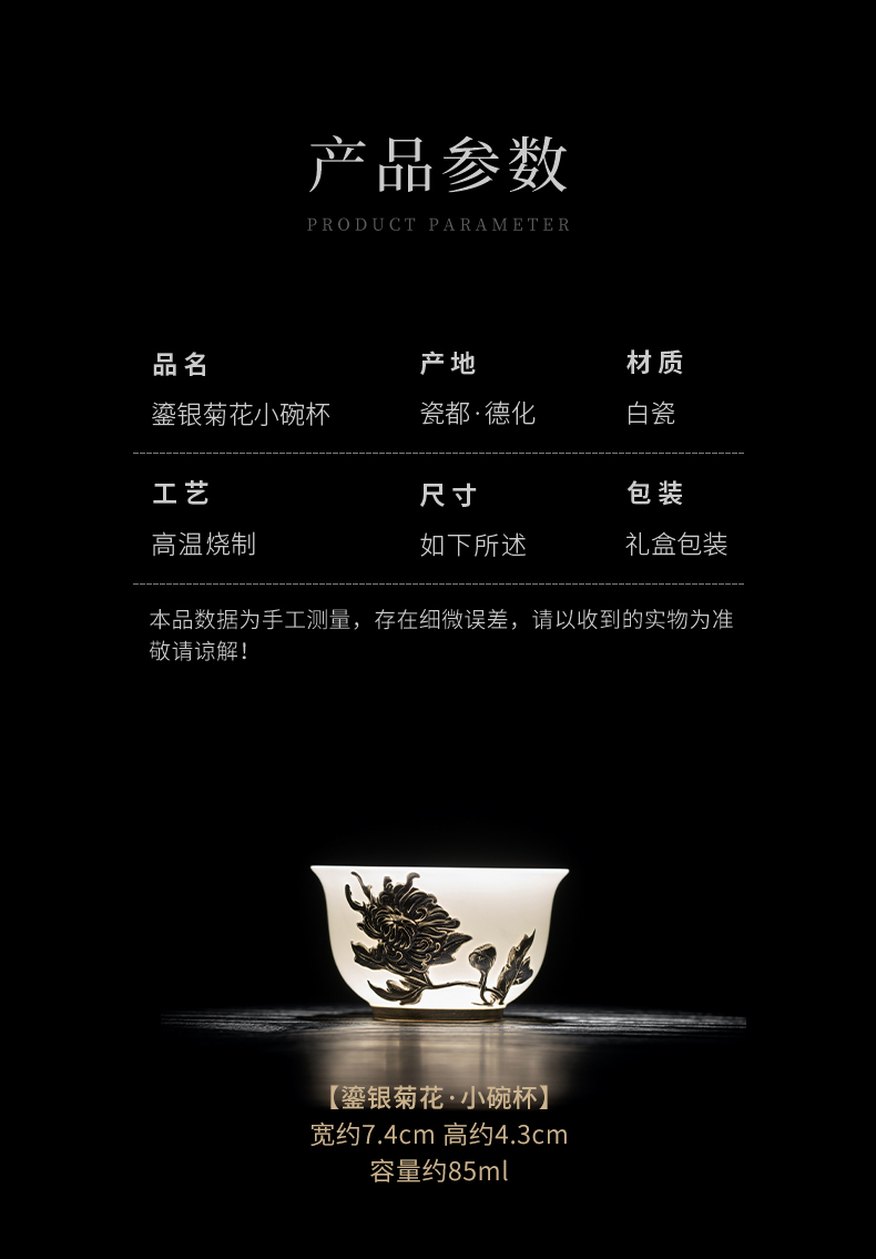 苏氏陶瓷(SUSHI CERAMICS) 玉瓷鎏银菊花主人杯 J1271 茶杯85ml*1 白色(单位:个)