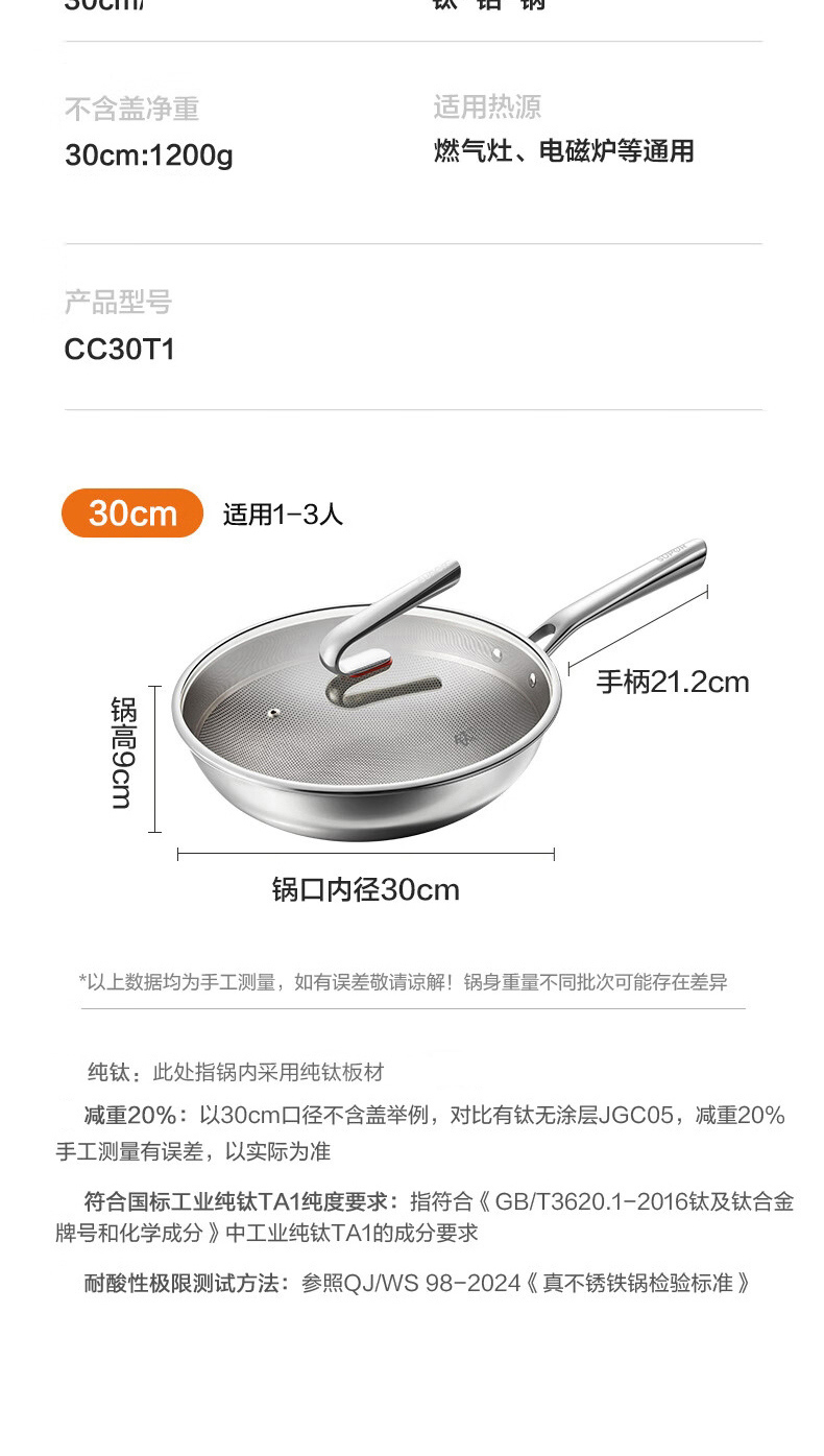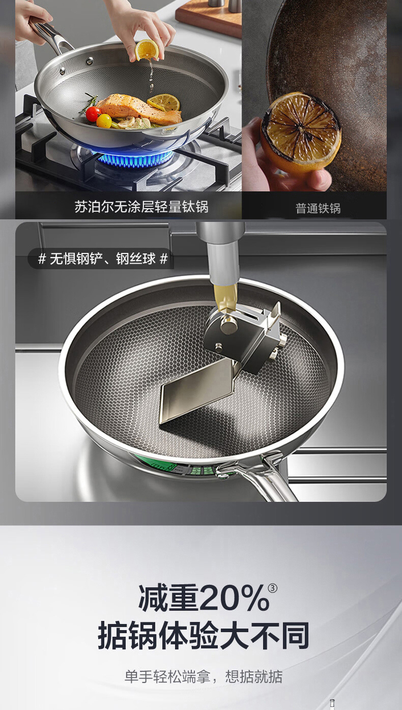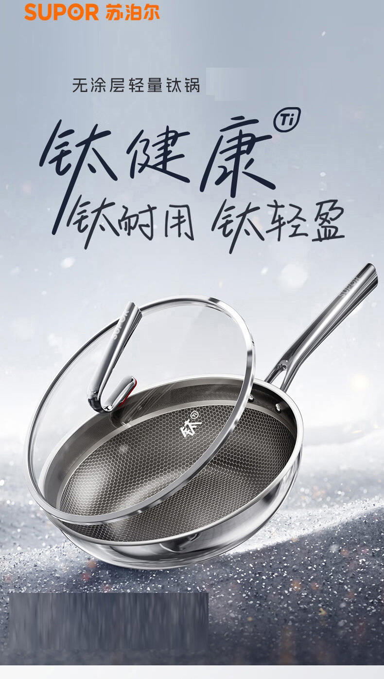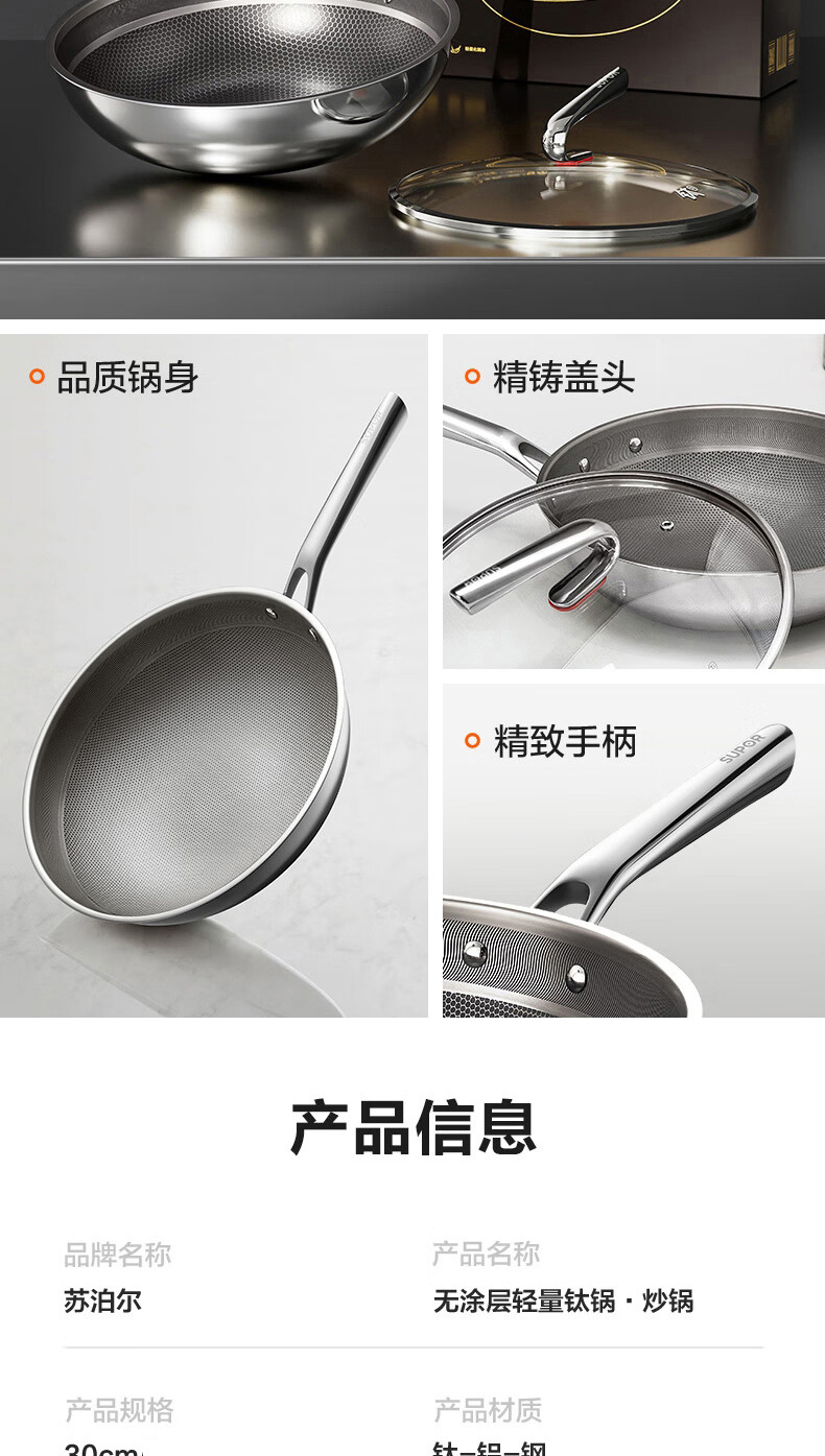 苏泊尔(SUPOR) 无涂层轻量钛锅▪炒锅 CC30T1 30cm 不锈钢色(单位:个)