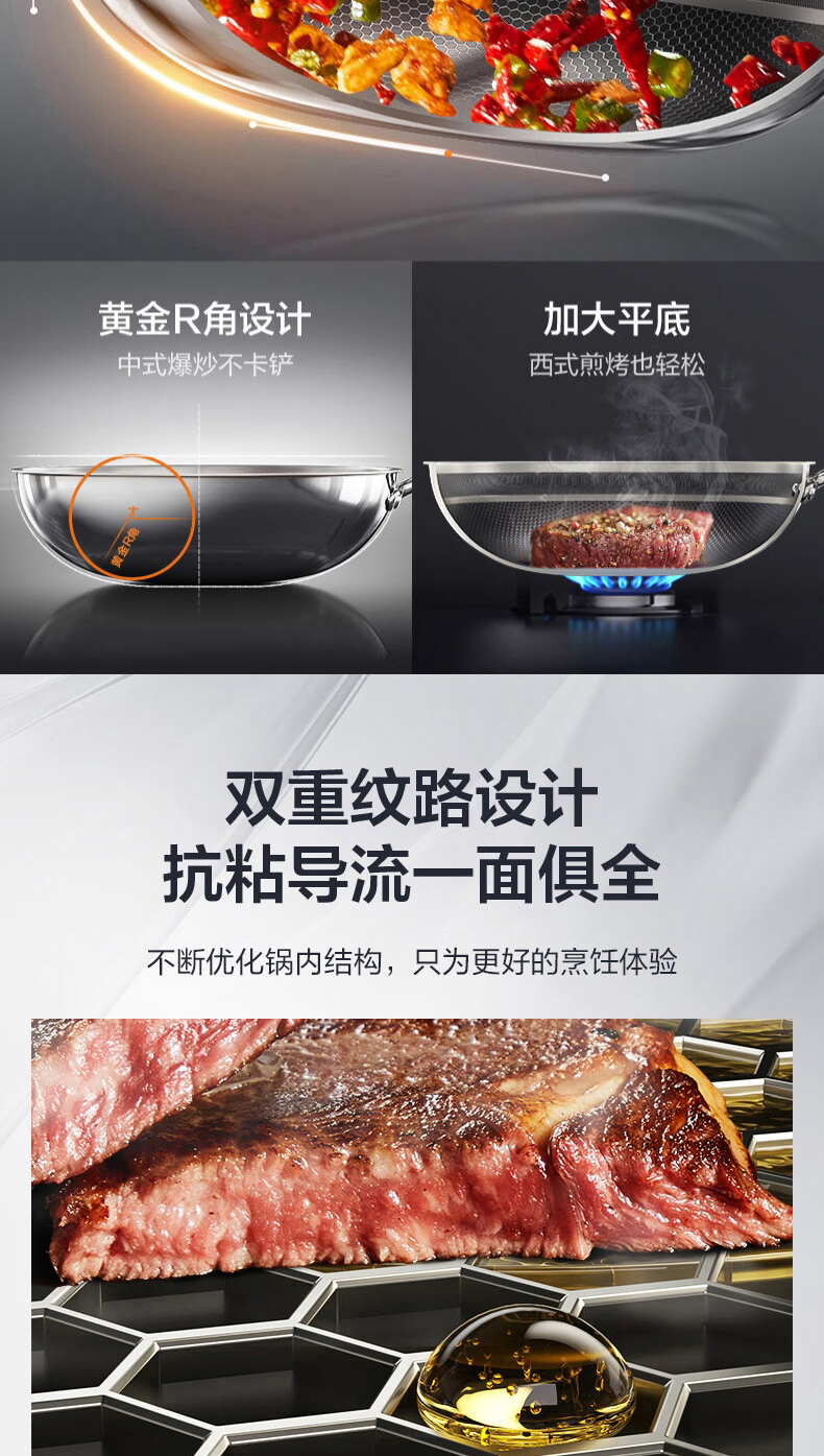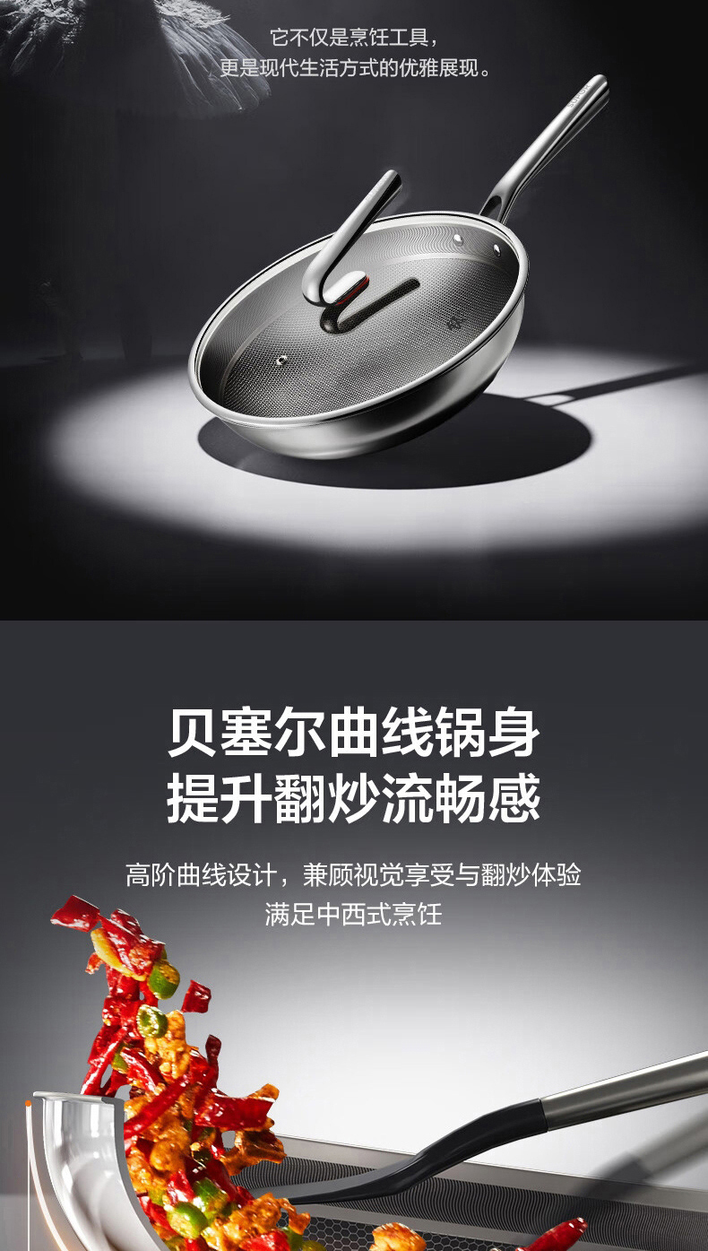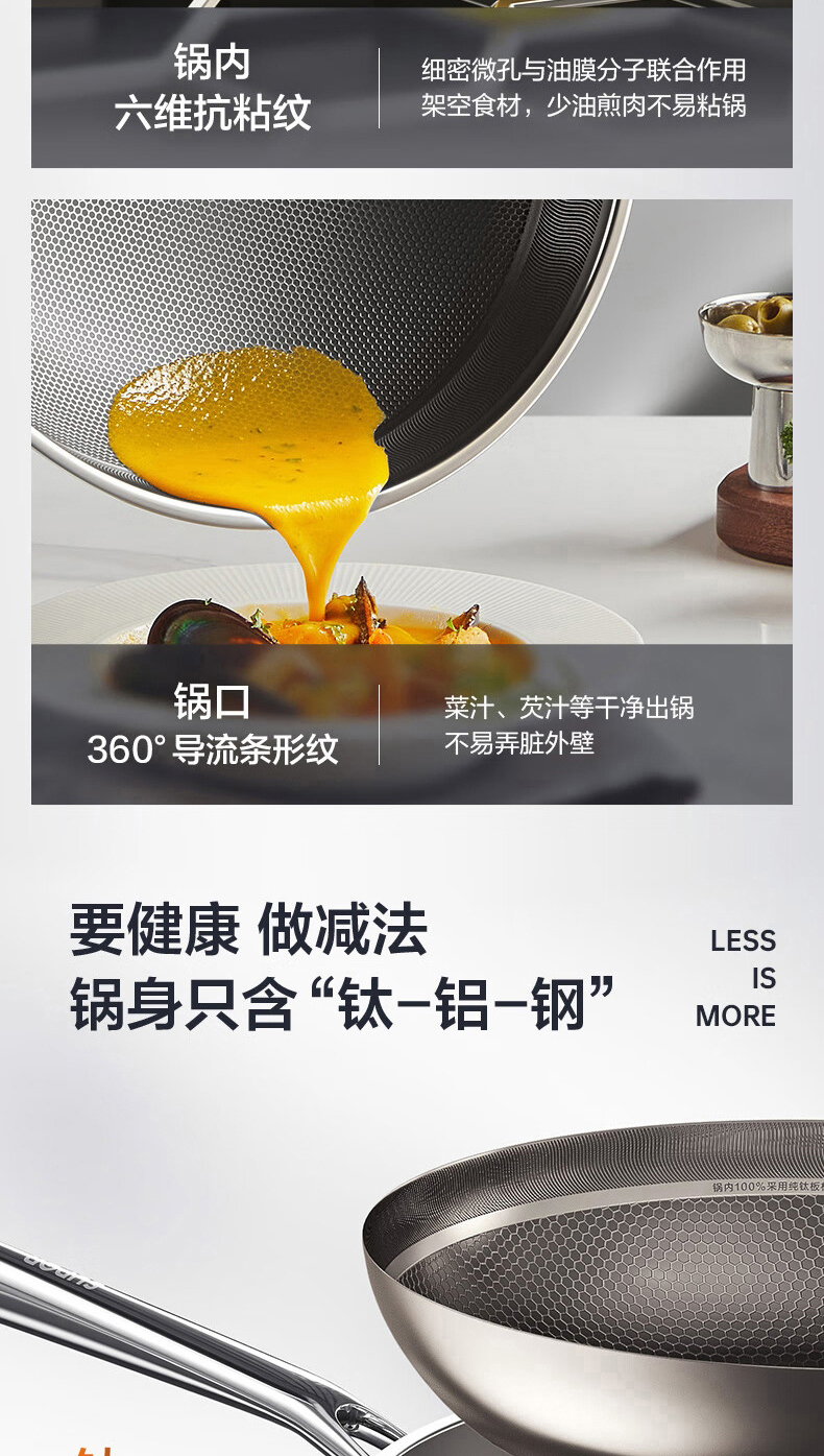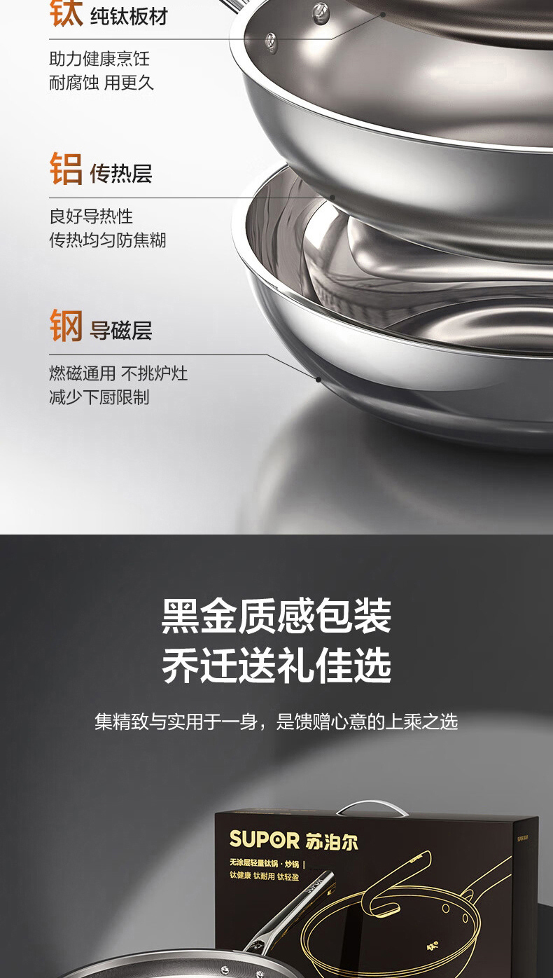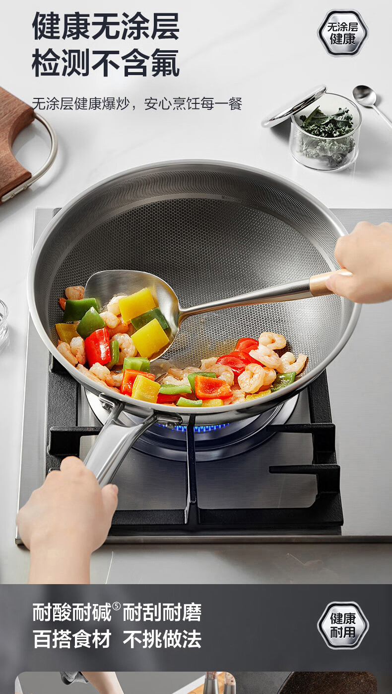 苏泊尔(SUPOR) 无涂层轻量钛锅▪炒锅 CC30T1 30cm 不锈钢色(单位:个)