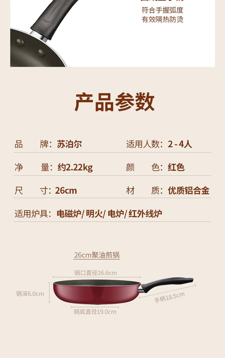 苏泊尔(SUPOR) 火红点聚油煎锅 PJ26HA10 26cm 红色(单位:个)