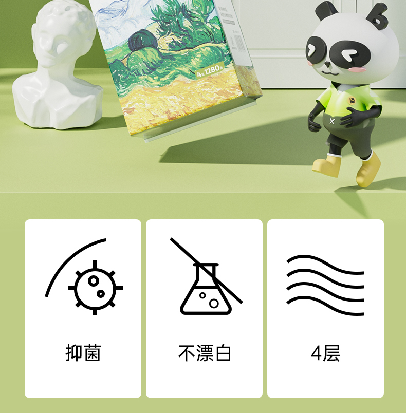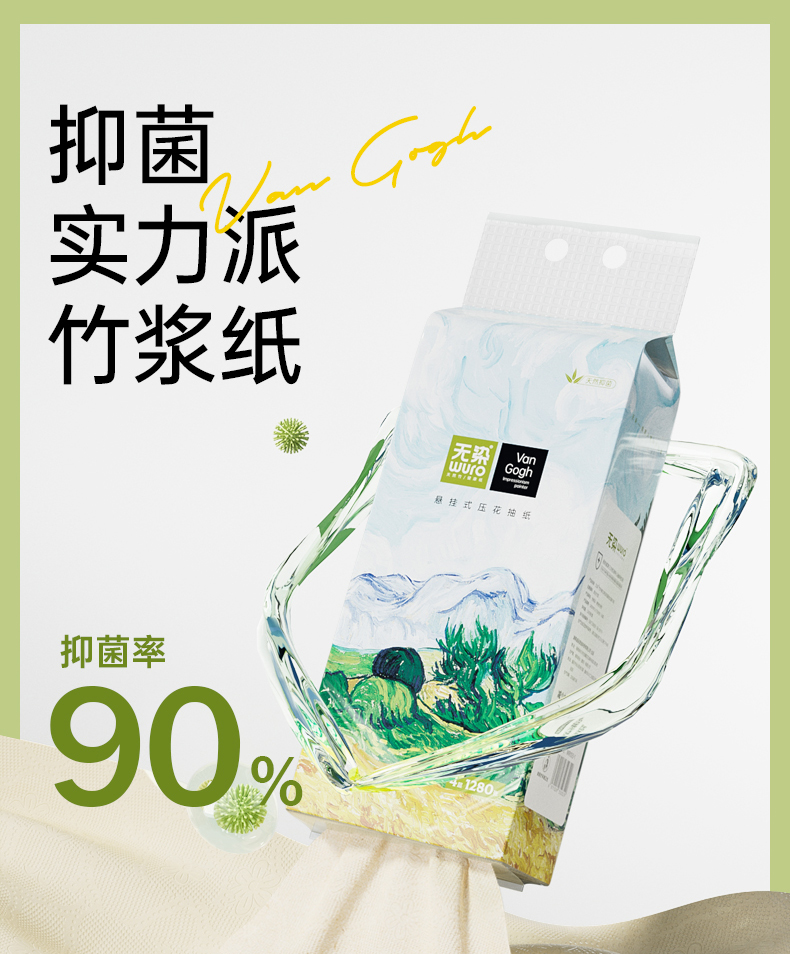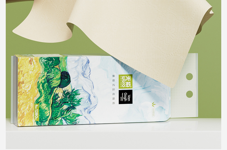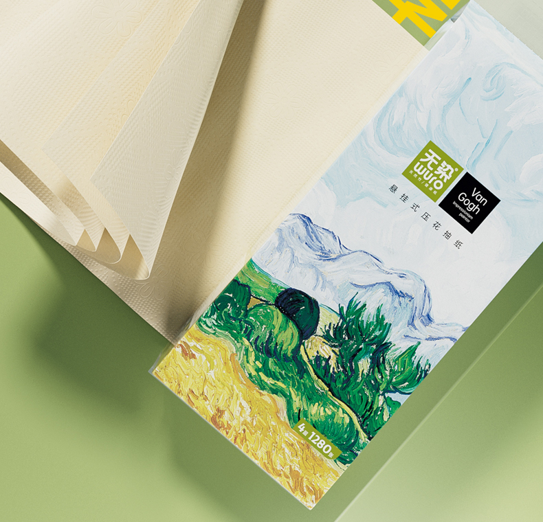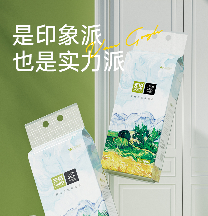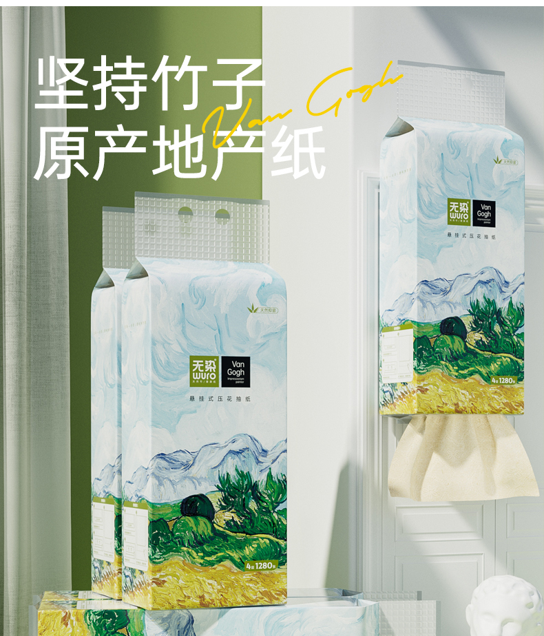 无染(WURO) 油画款挂抽面巾纸 WR103 4层320抽*5提 水蓝色(单位:箱)