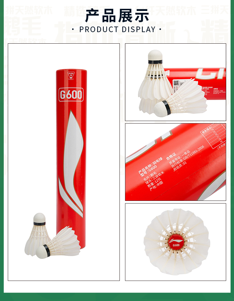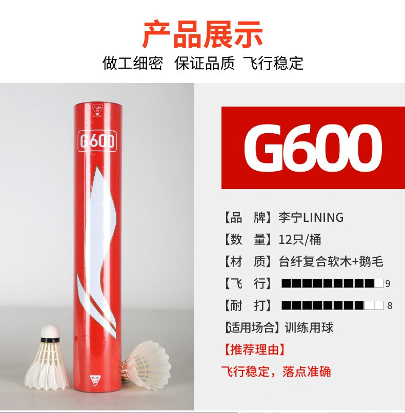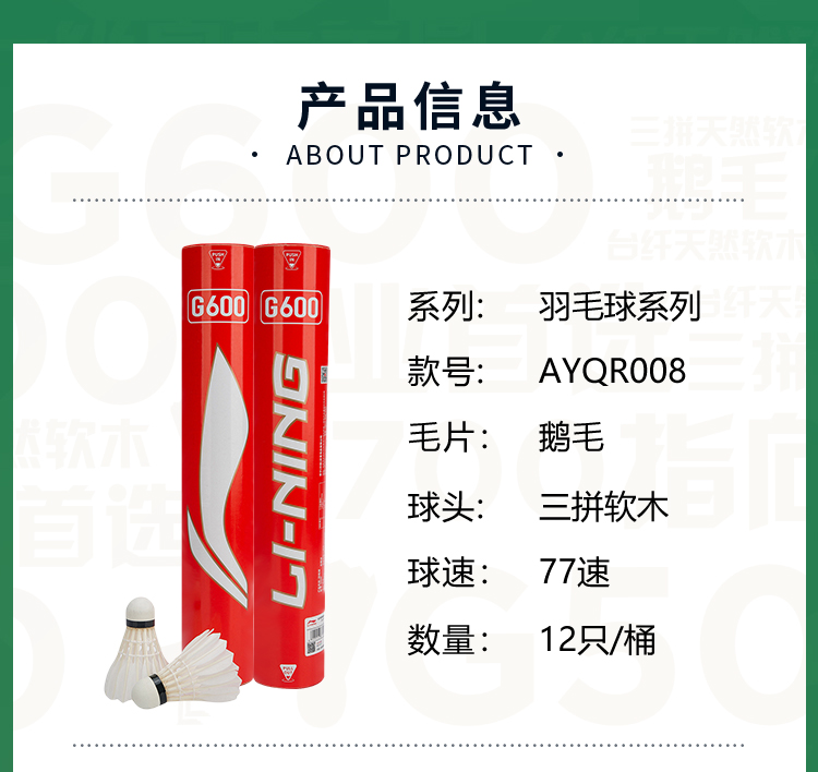 李宁(LI-NING) 羽毛球 AYQR008-77 G600 12只/桶 白色(单位:桶)