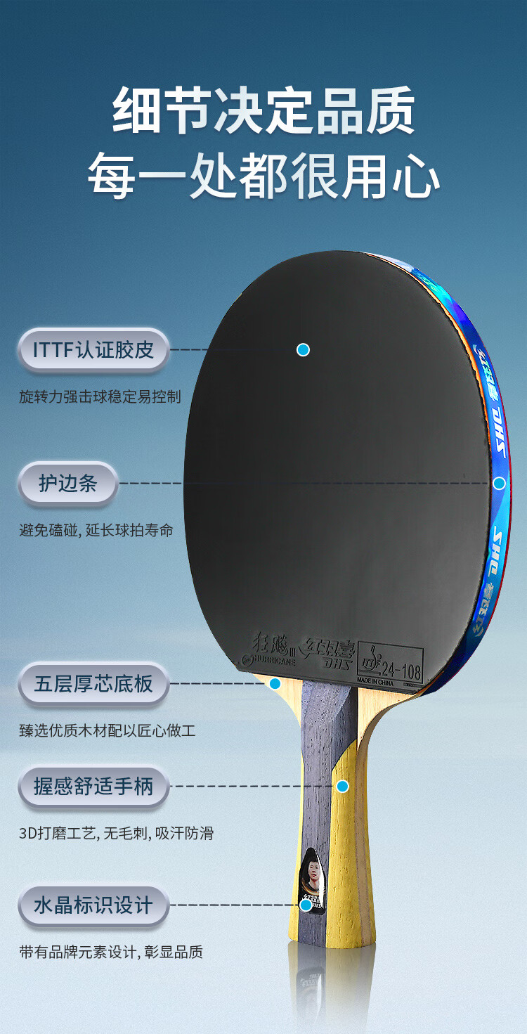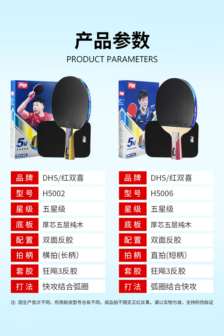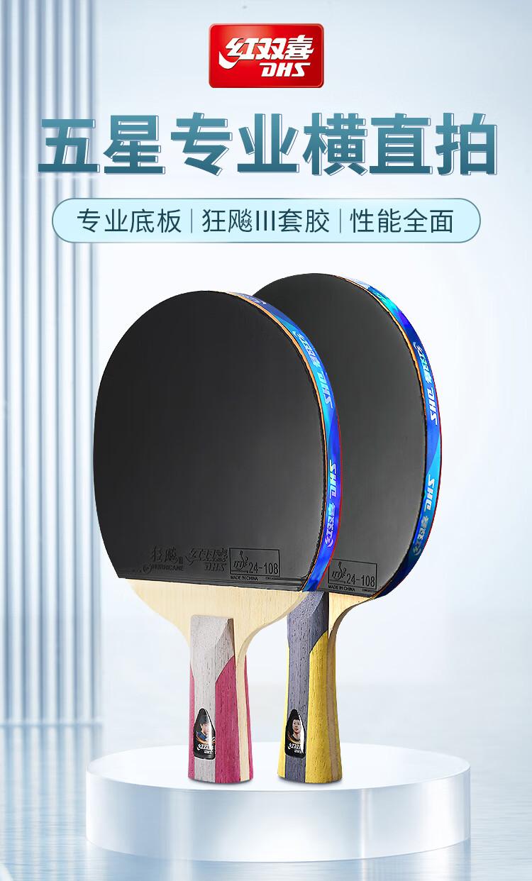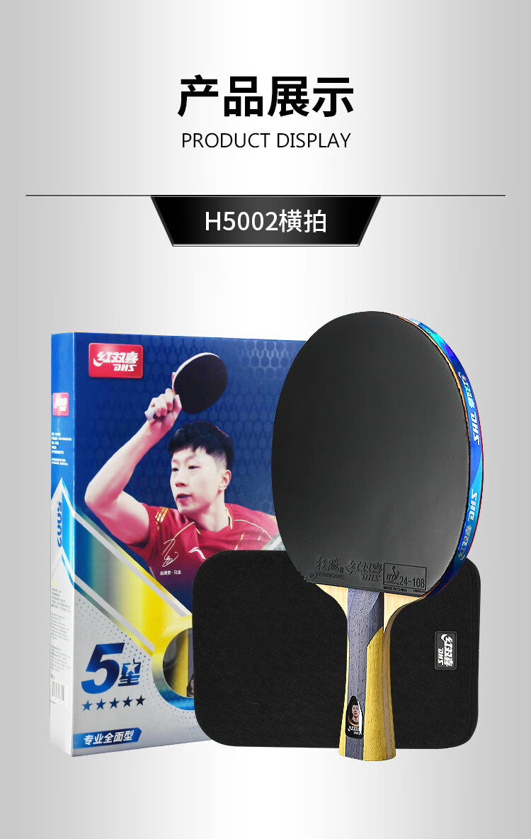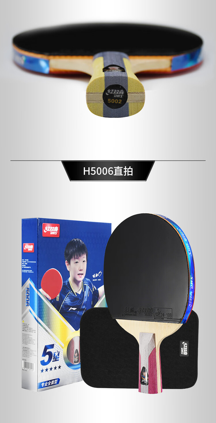 红双喜(DHS) 乒乓球拍 H5006 直拍 红色(单位:只)
