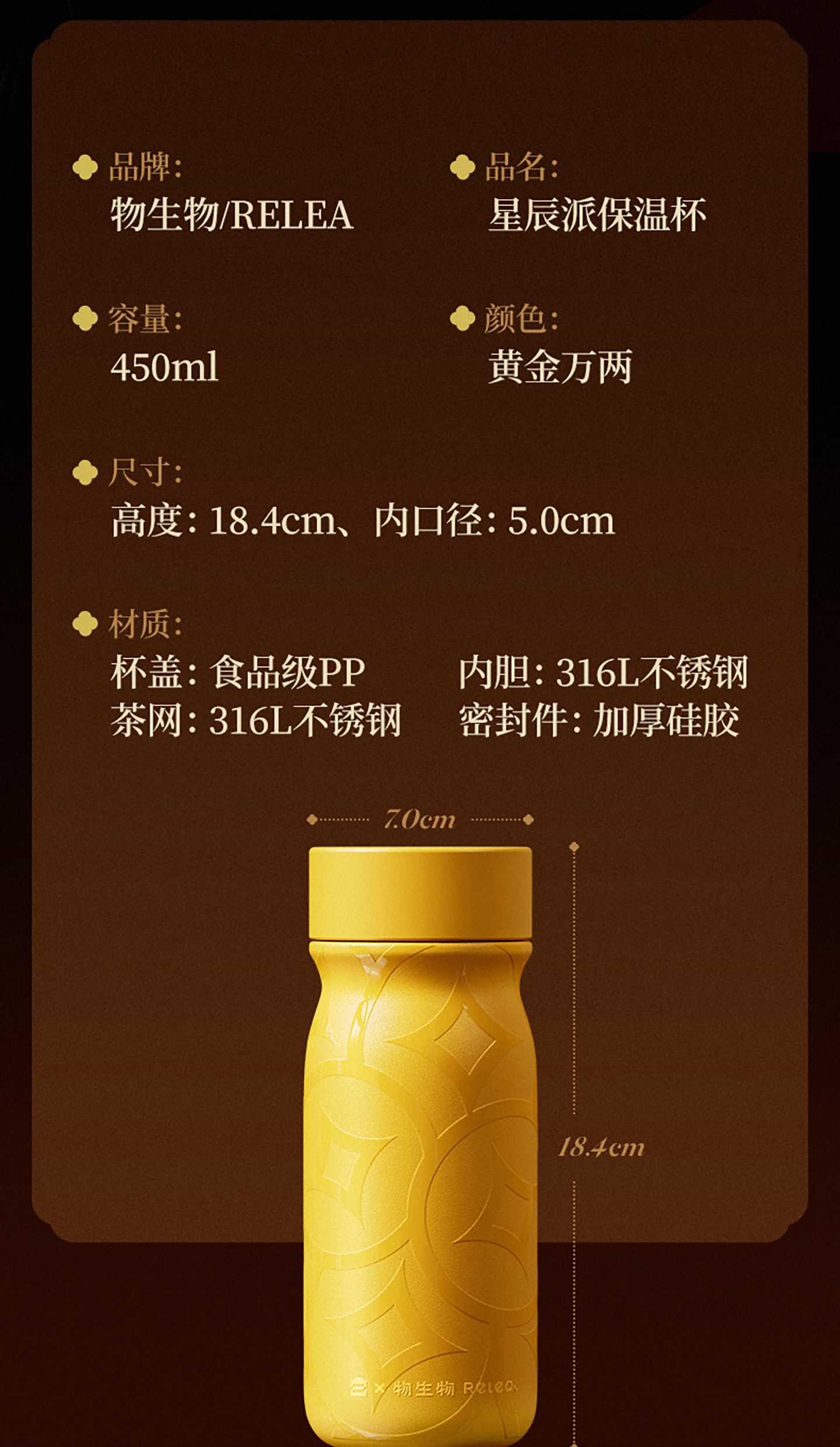 物生物(RELEA) 星辰派保温杯故宫联名款 JV012559-0450-YS00 450ML 黄金万两(单位:个)