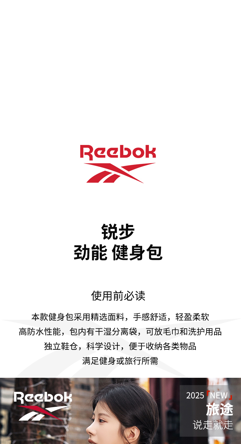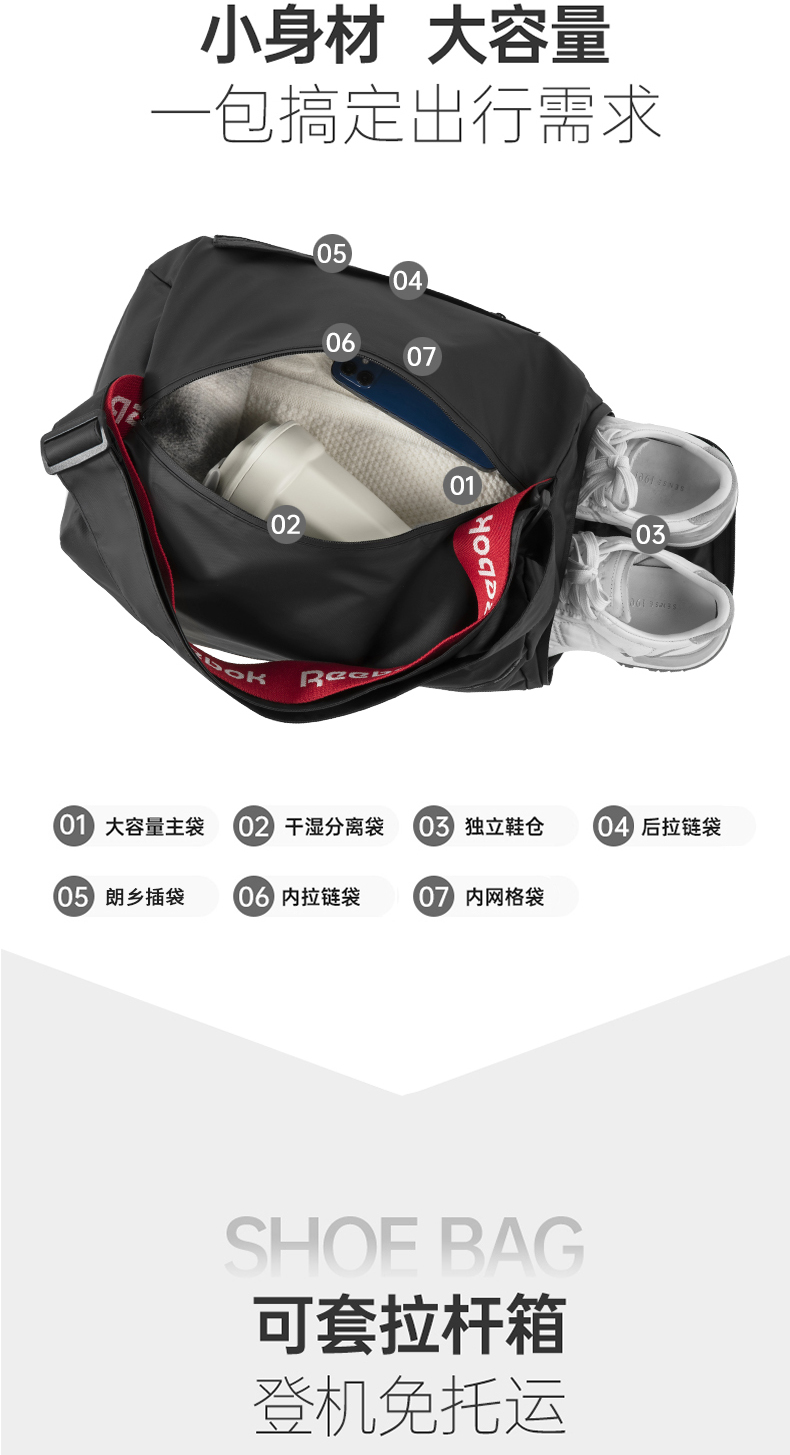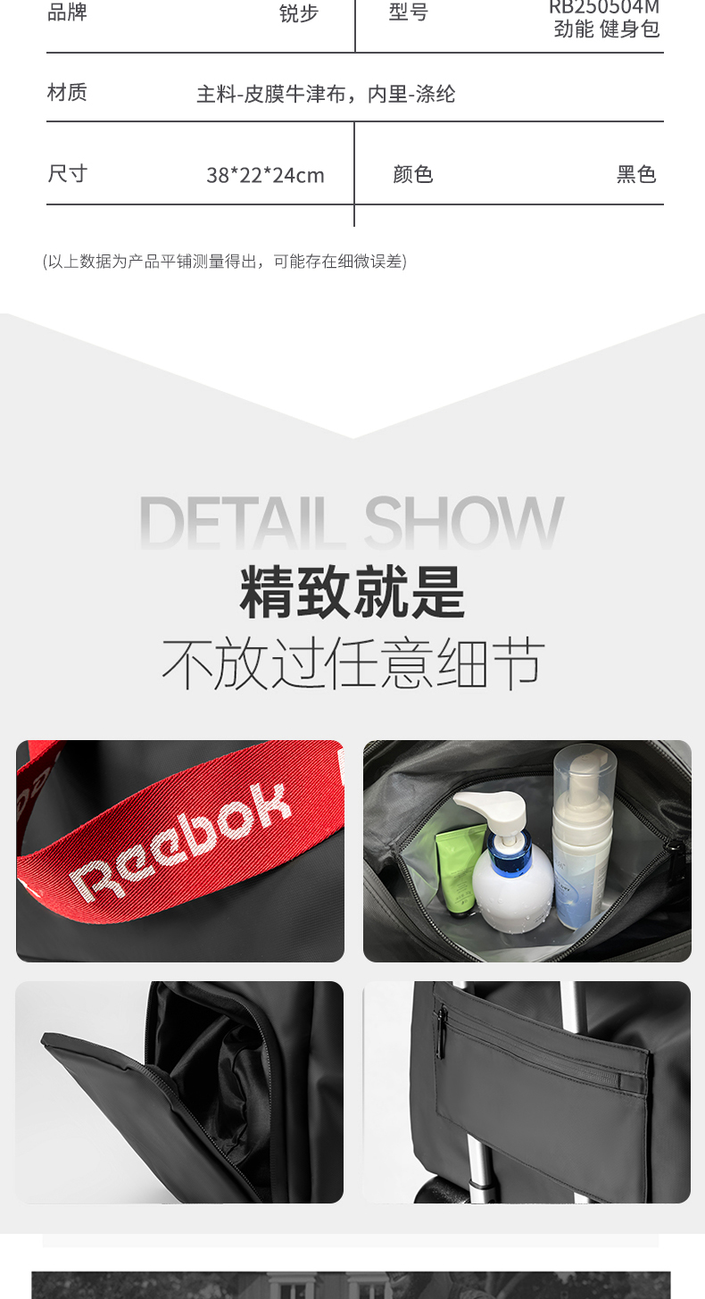 锐步(Reebok) 劲能 健身包 RB250504M 38*22*24cm 黑色(单位:个)