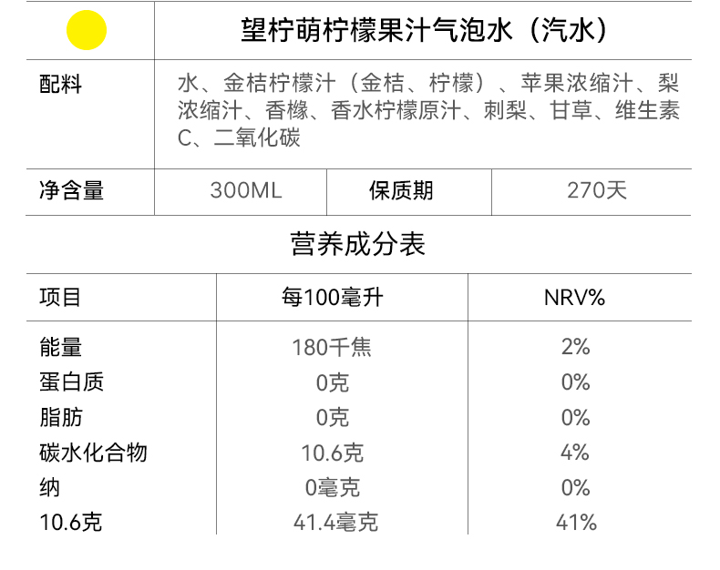好望水 望柠萌(泡沫)300ml*6瓶(单位:箱) 黄色