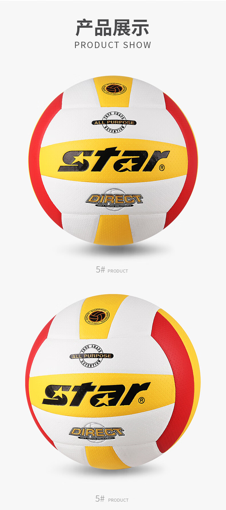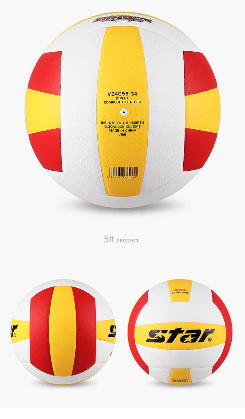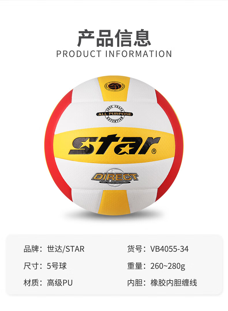 世达(star) 排球PU柔软硬排比赛用球 vb4055-34 5号 混色(单位:个)