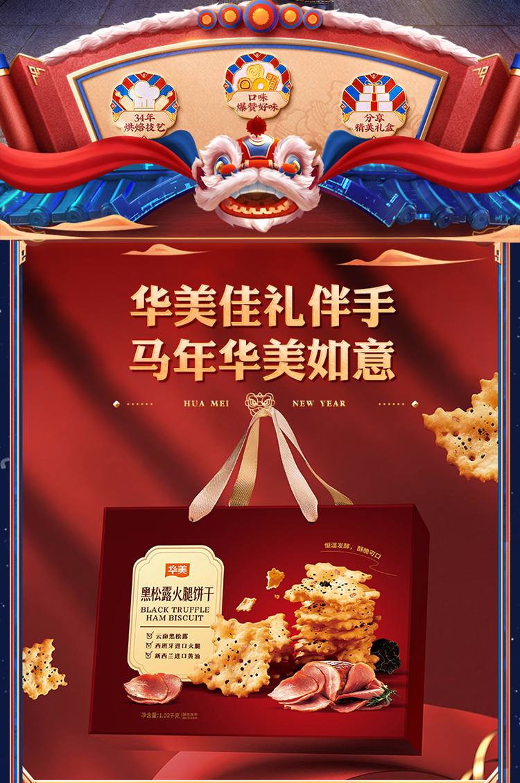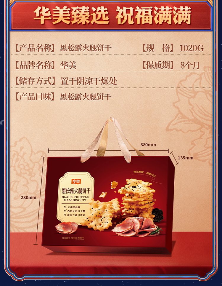 华美 黑松露火腿 饼干 1020g 红色(单位:盒)