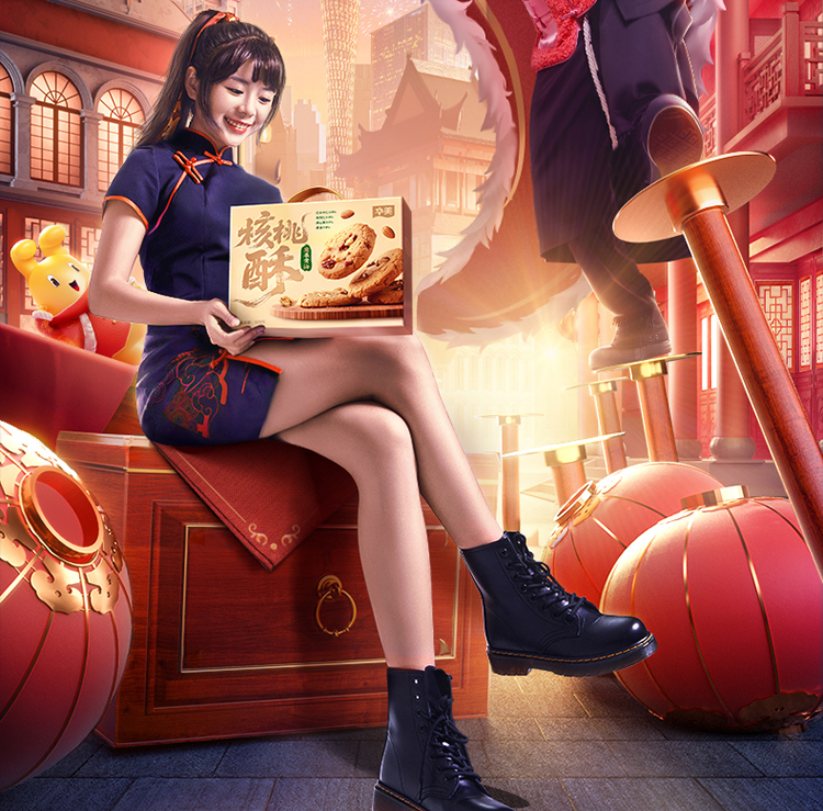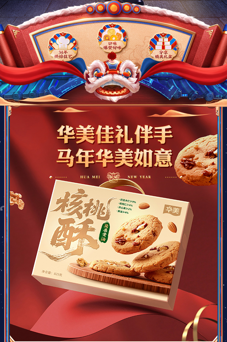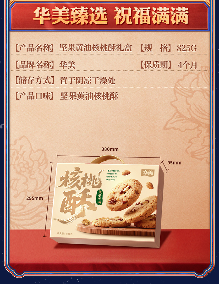 华美 坚果 黄油核桃酥 825g 奶茶杏(单位:盒)