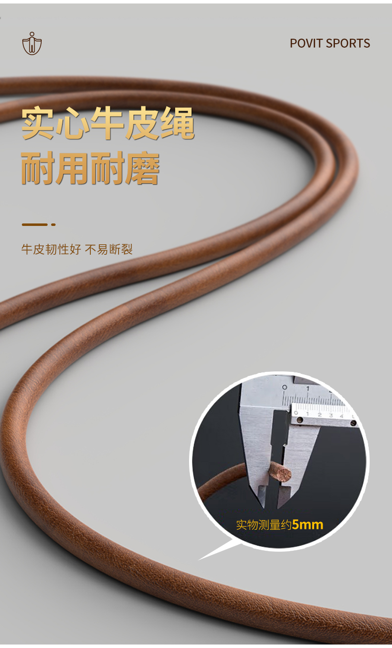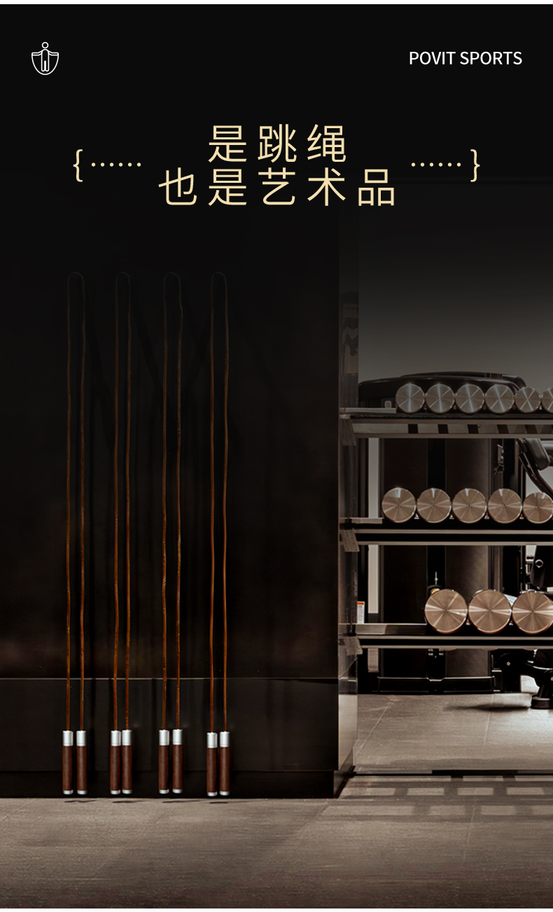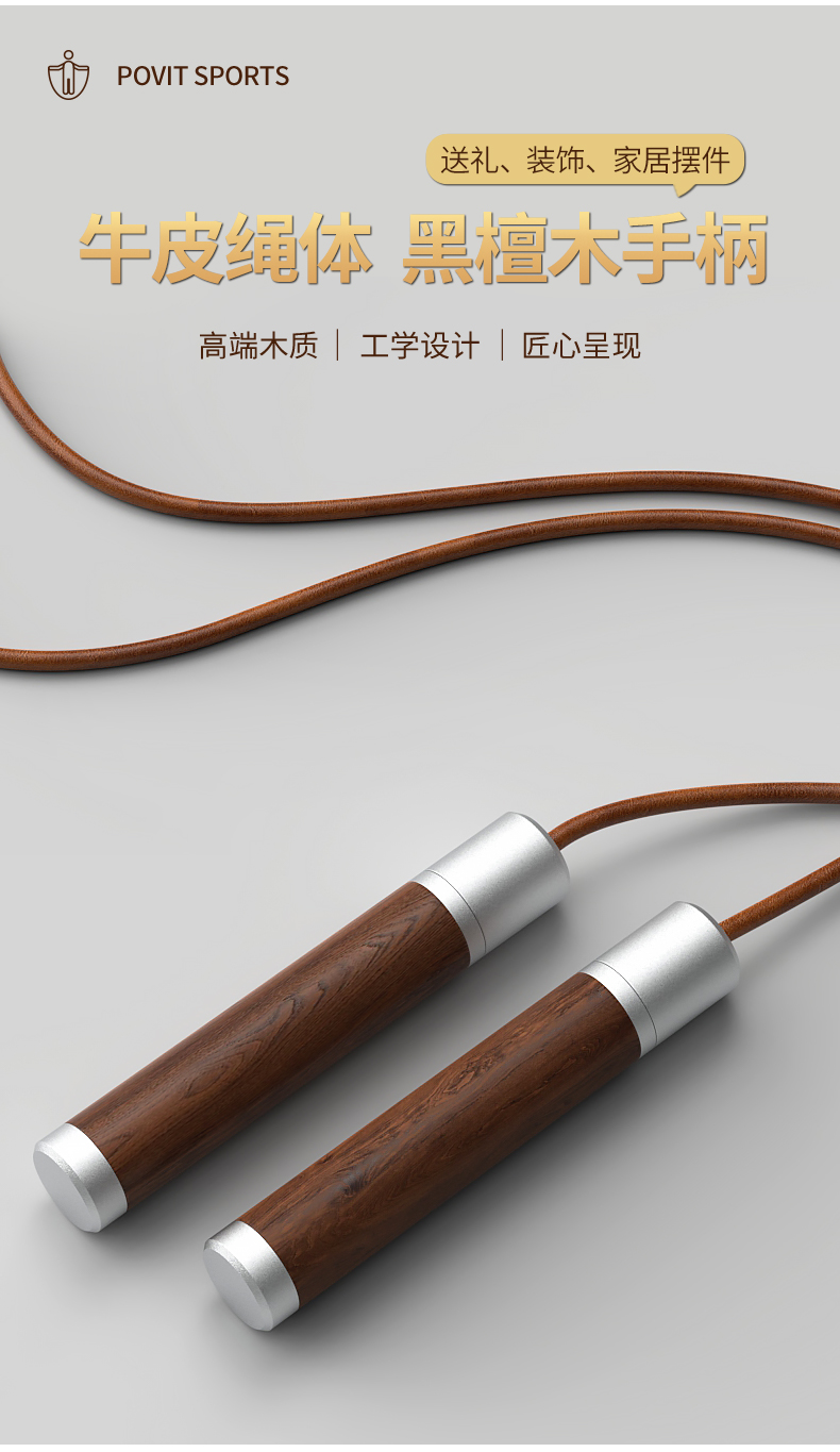 普为特(POVIT) 黑檀木木柄跳绳成人健身减肥男士体能锻炼牛皮绳 P-273 272g 褐色(单位:条)