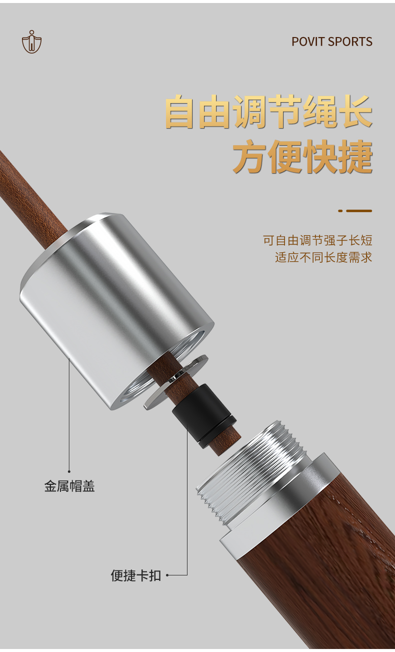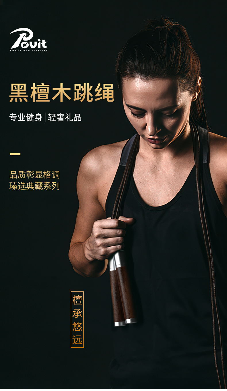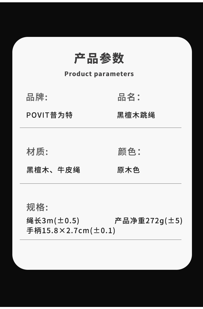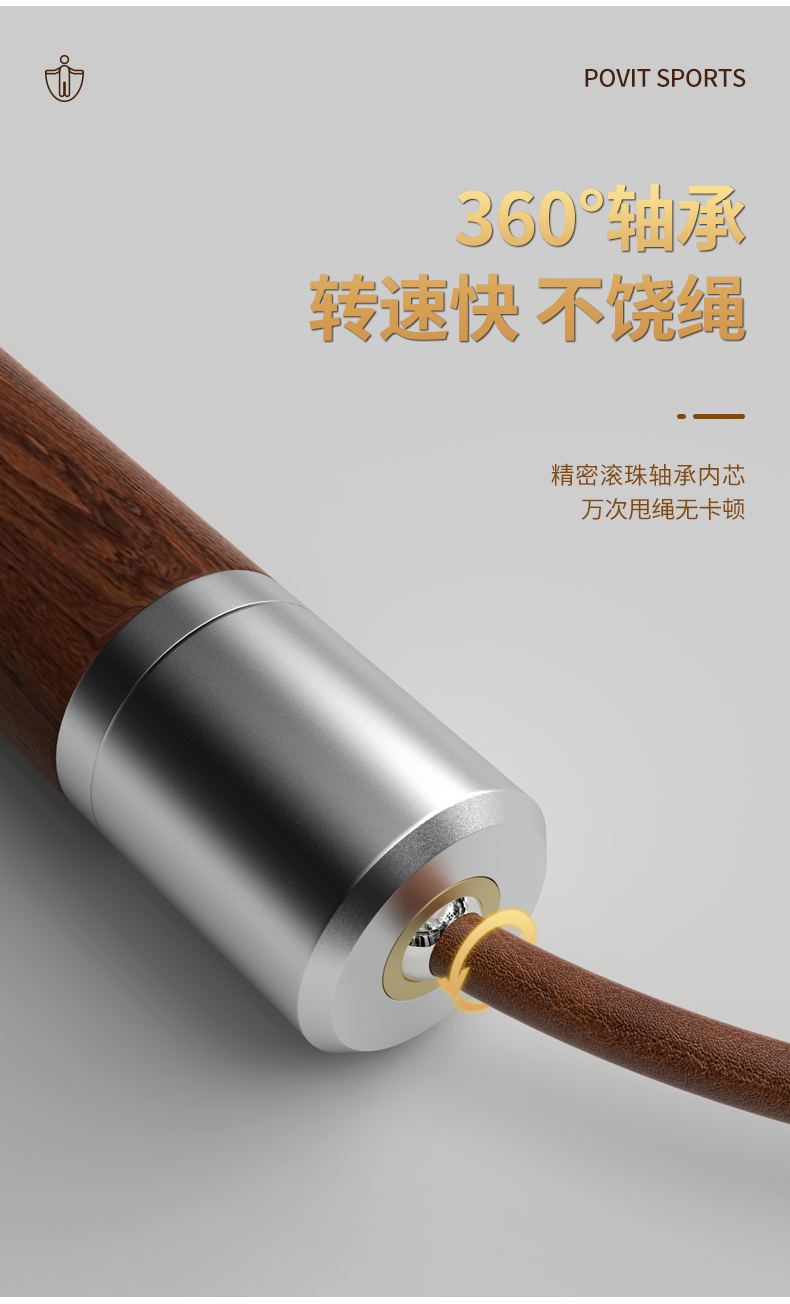 普为特(POVIT) 黑檀木木柄跳绳成人健身减肥男士体能锻炼牛皮绳 P-273 272g 褐色(单位:条)
