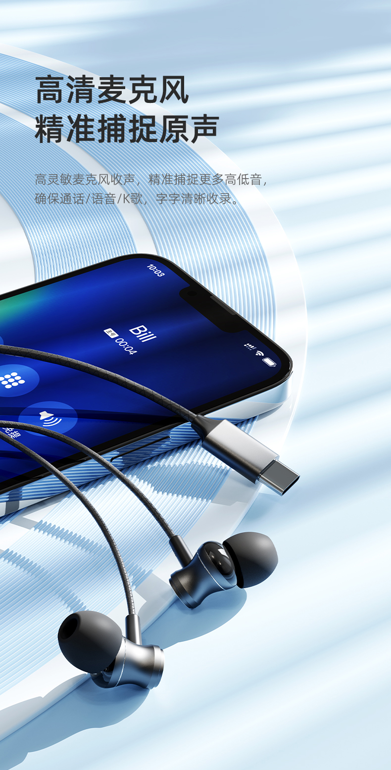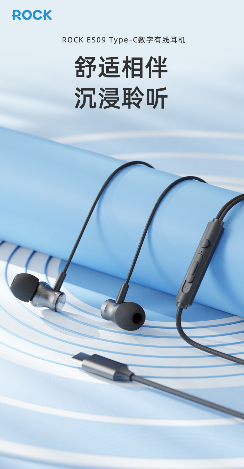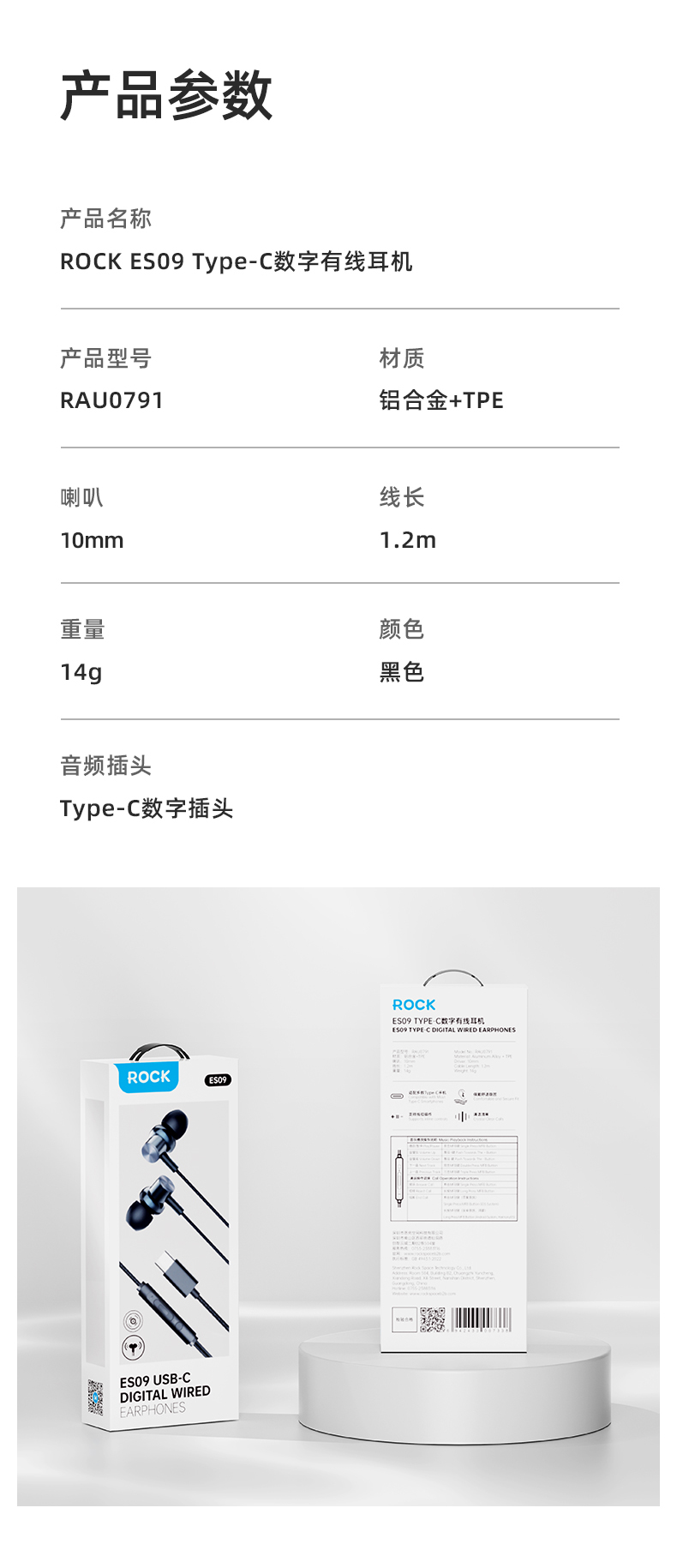 ROCK ES09 Type-C数字有线耳机 RAU0791 线长:1.2m 黑色(单位:副)