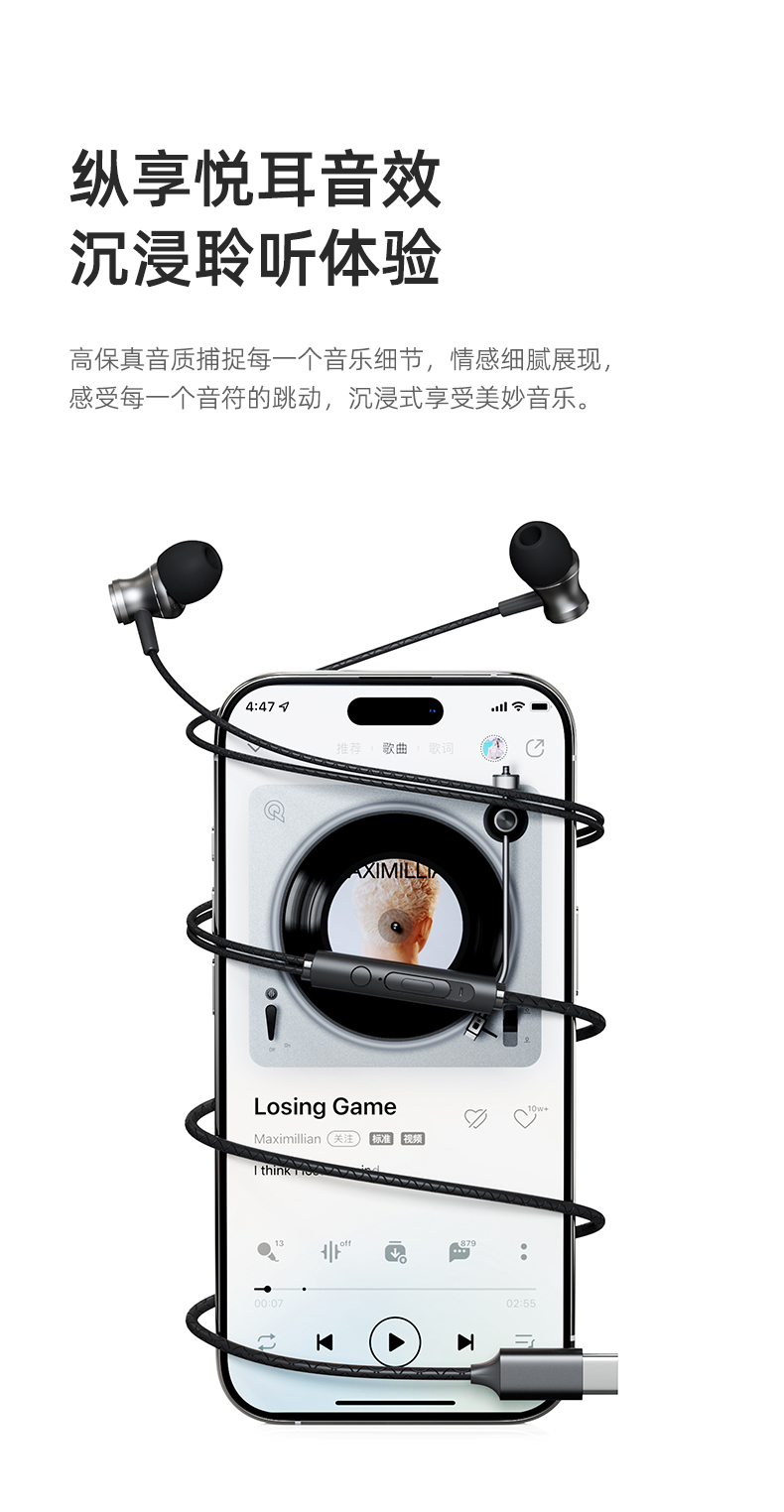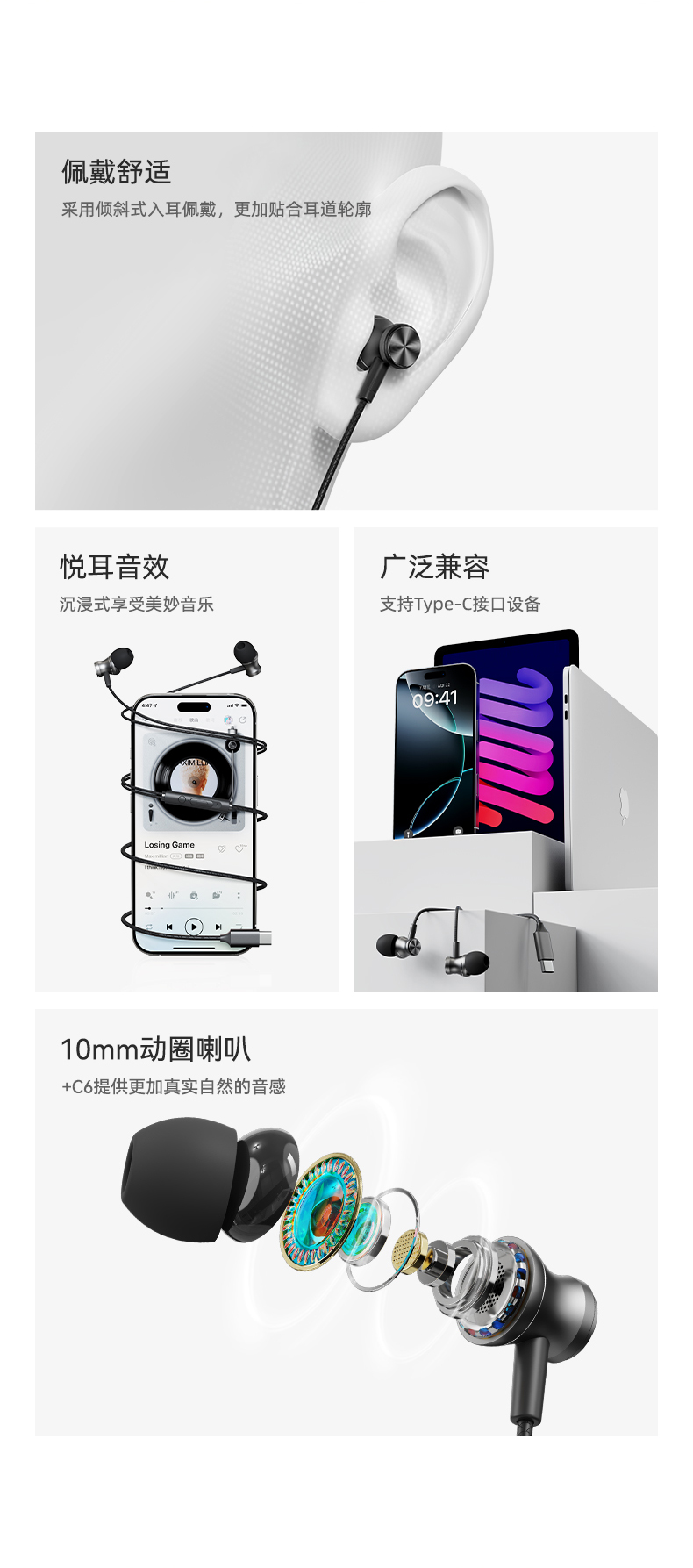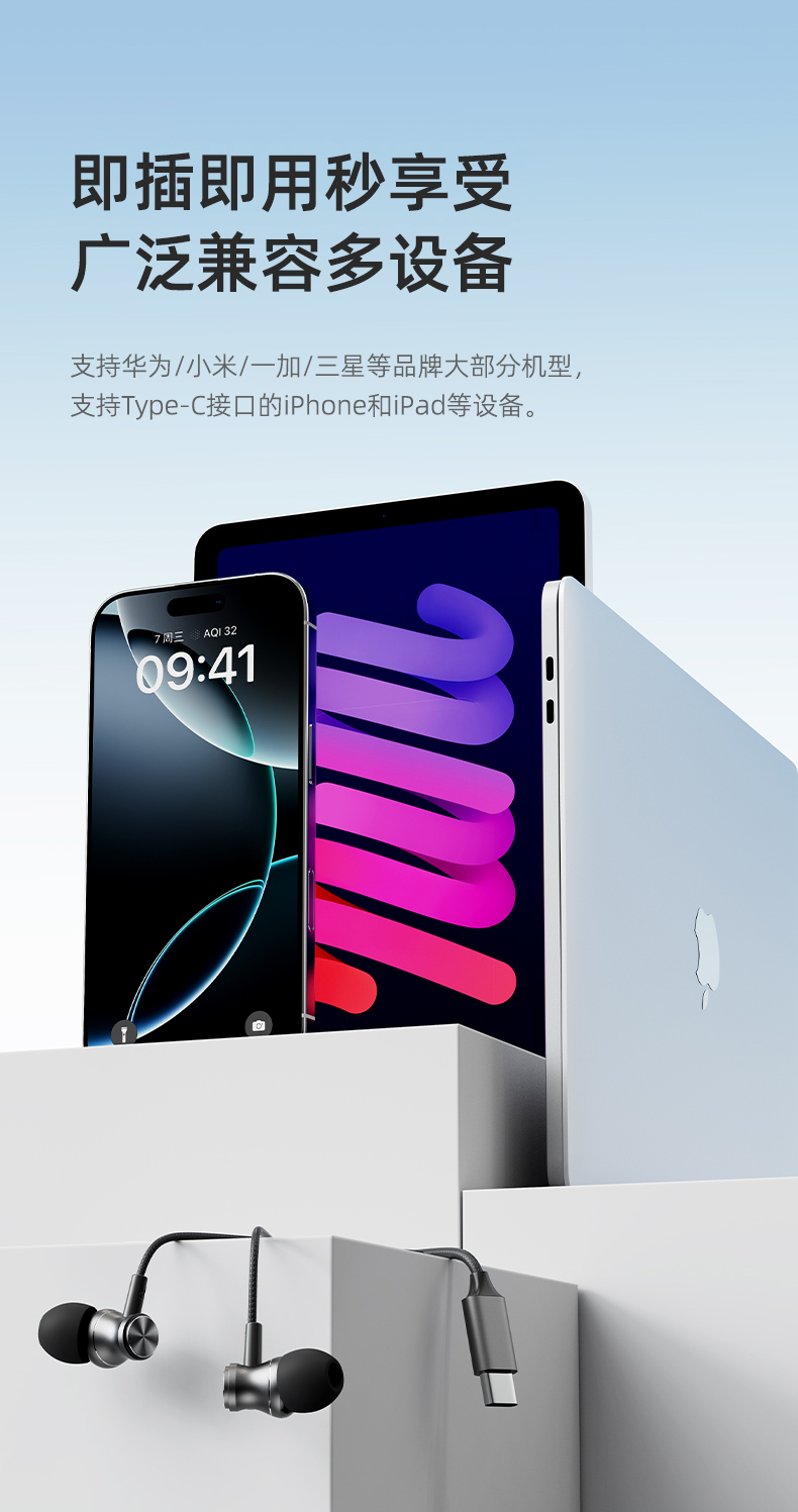 ROCK ES09 Type-C数字有线耳机 RAU0791 线长:1.2m 黑色(单位:副)