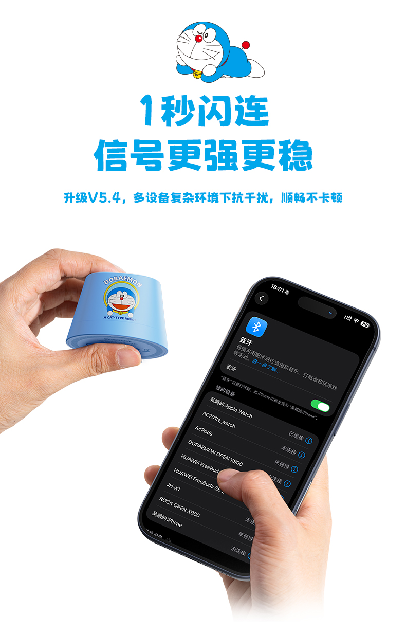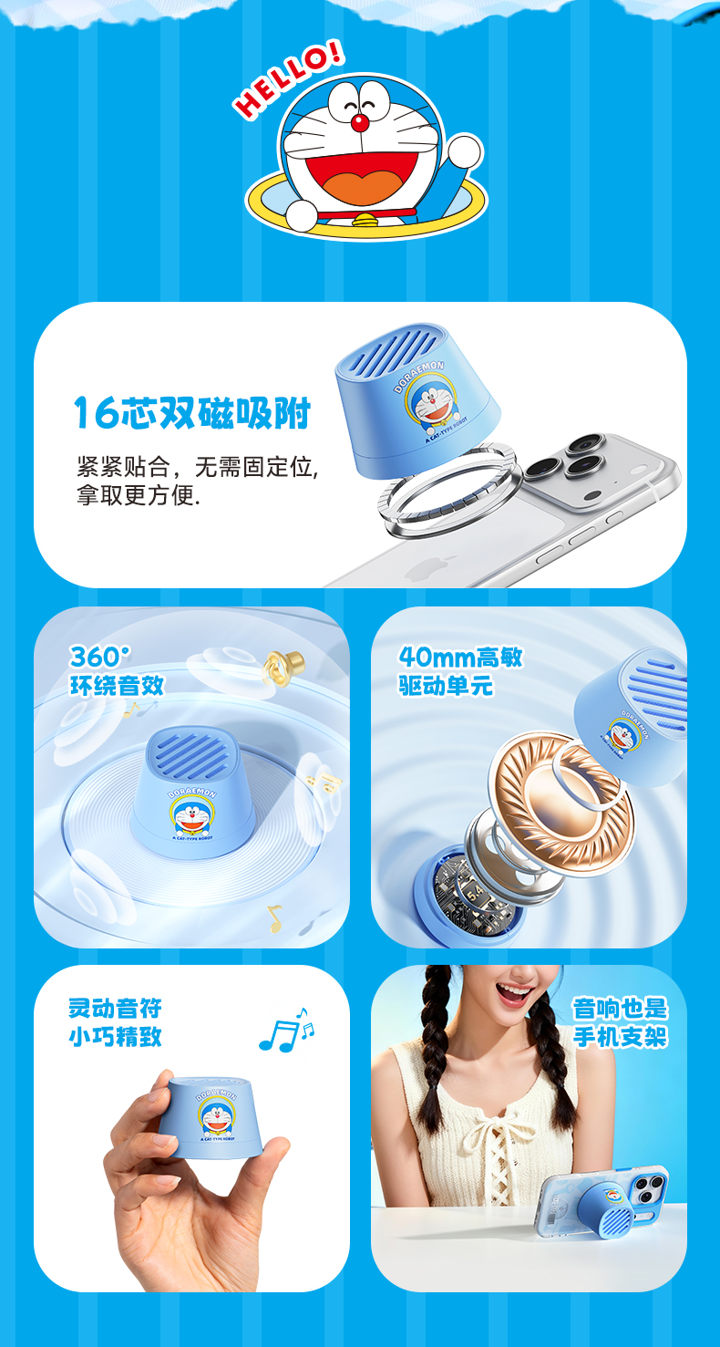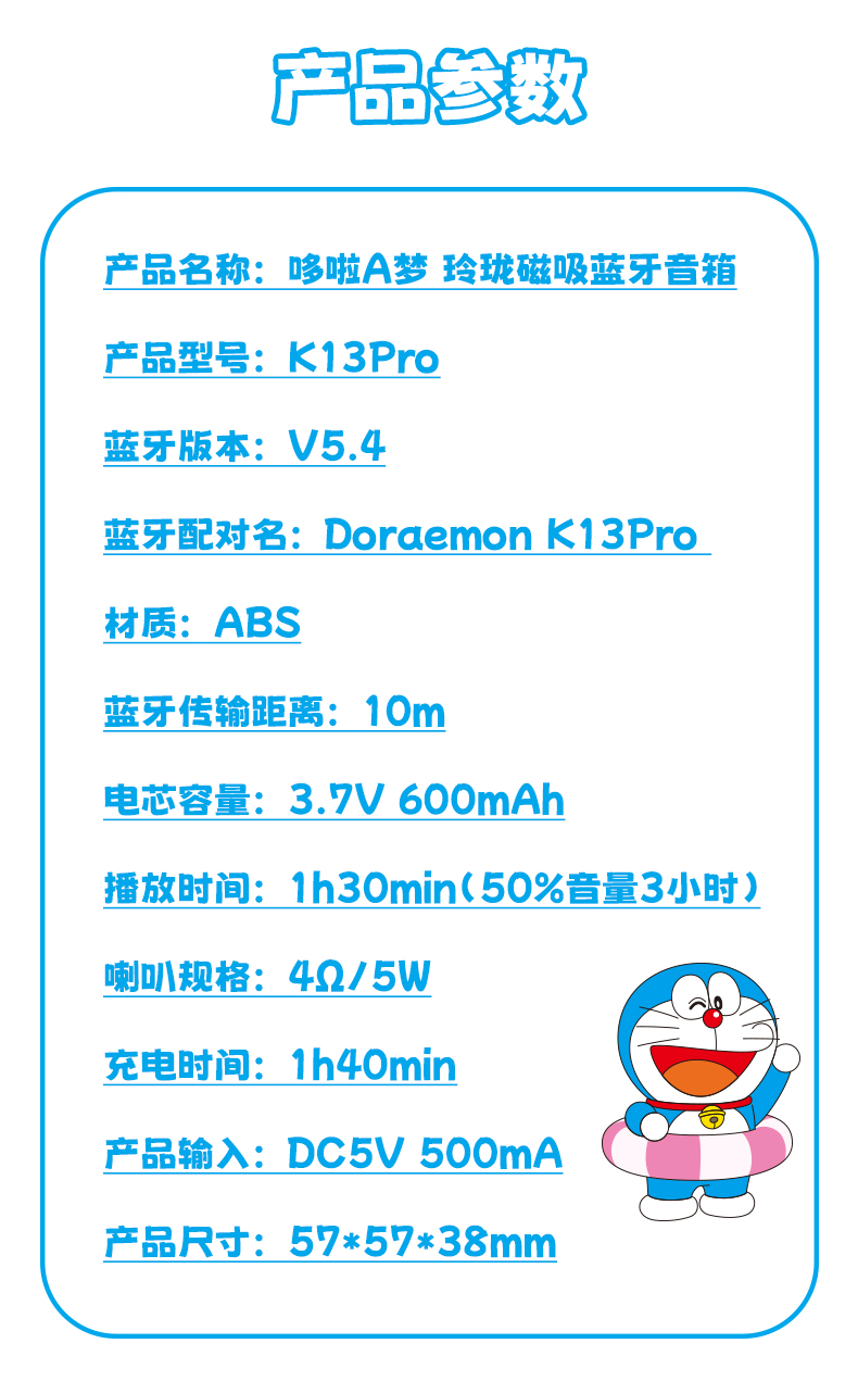 ROCK 哆啦A梦 玲珑磁吸蓝牙音箱 K13Pro 电芯容量:600mAh 蓝色(单位:个)