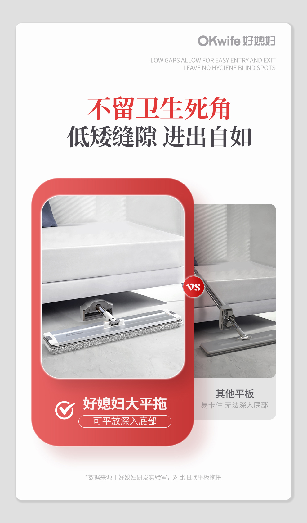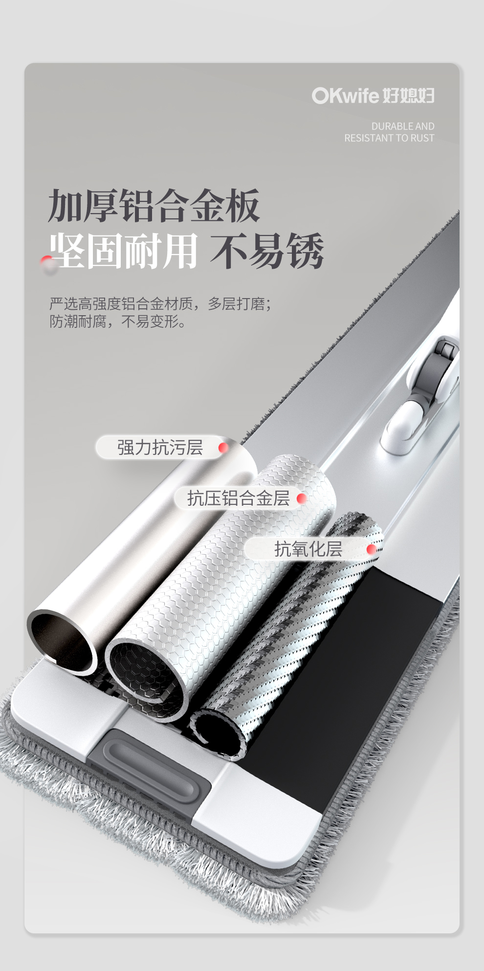 好媳妇(OKwife) 45未来风亮洁免手洗平拖-全铝板2块布 AGW-7028A-1-2 45*11cm两块布 白色(单位:把)