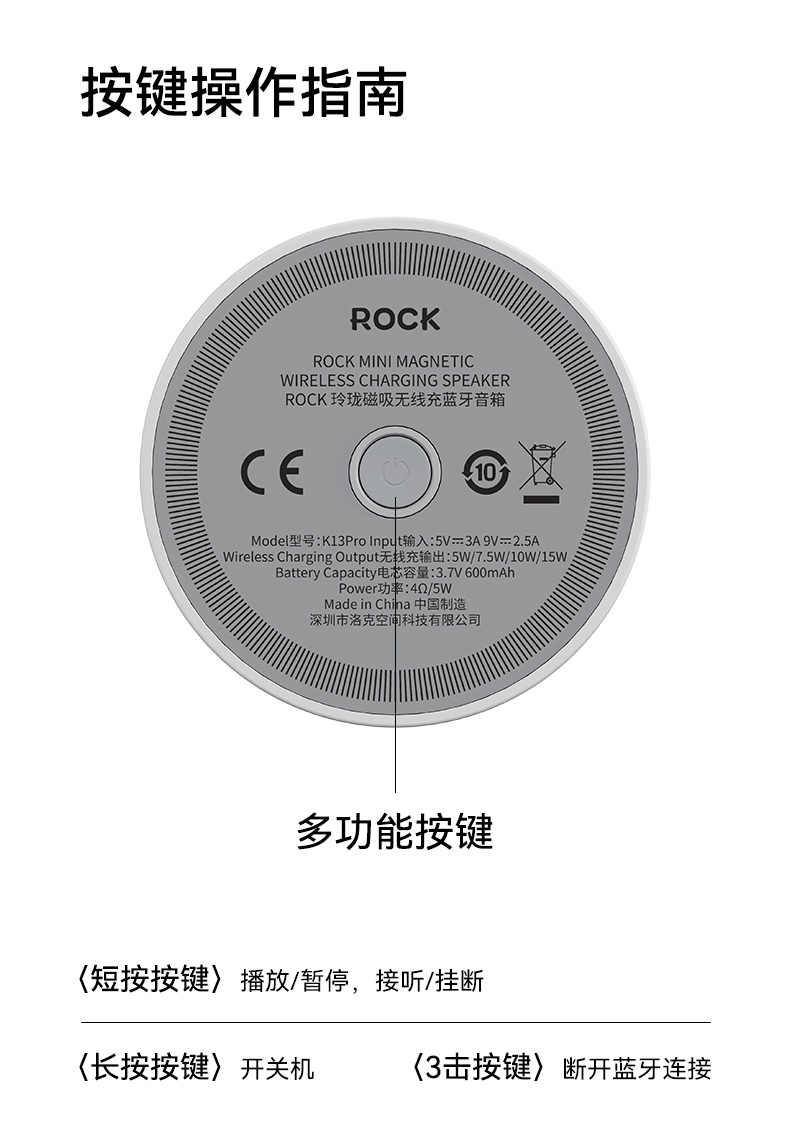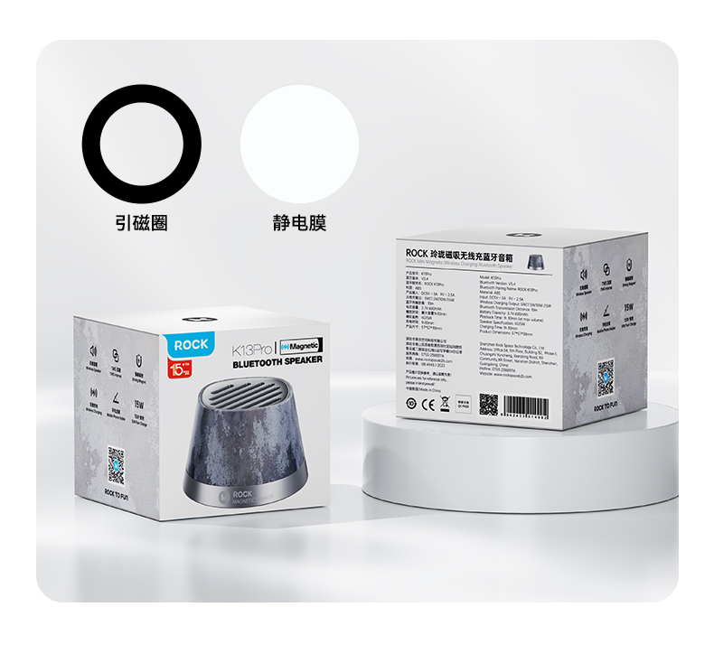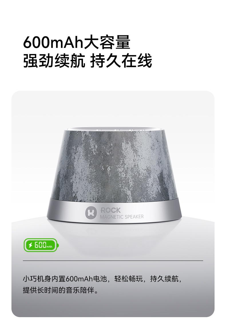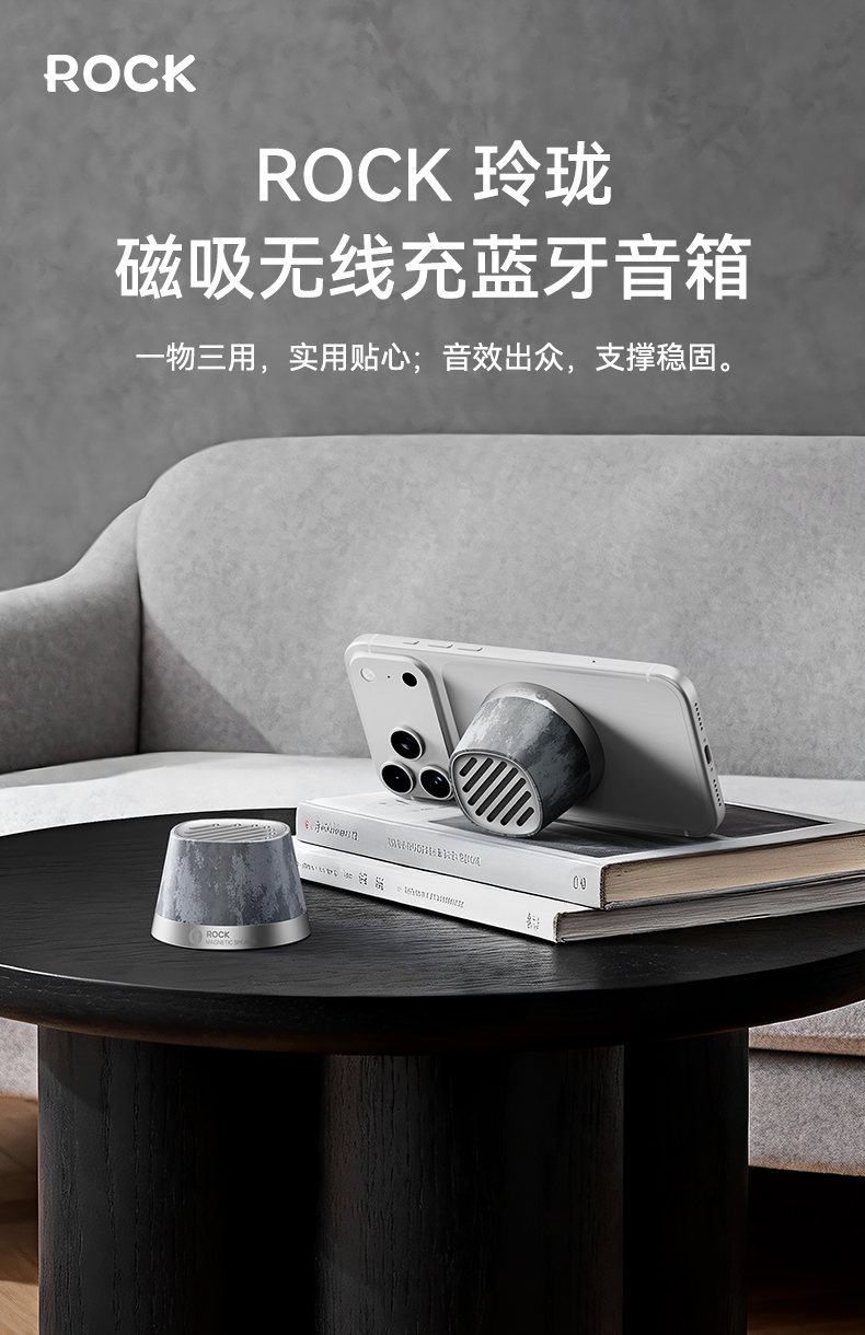 ROCK 玲珑磁吸无线充蓝牙音箱 K13Pro 电芯容量:600mAh 灰色(单位:个)