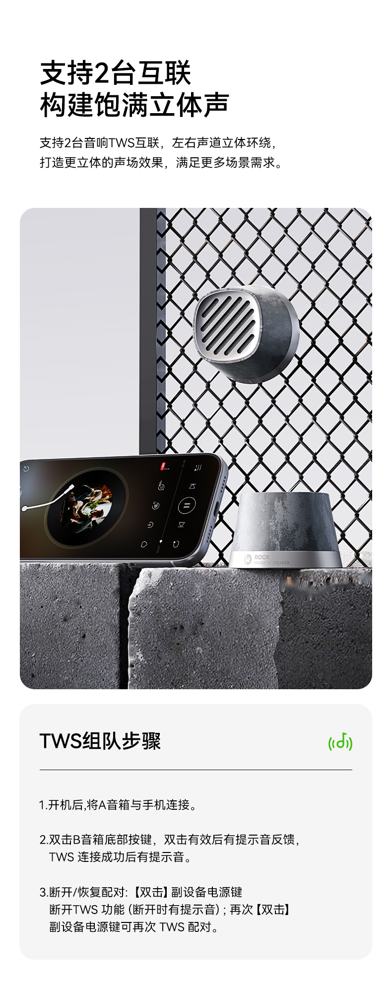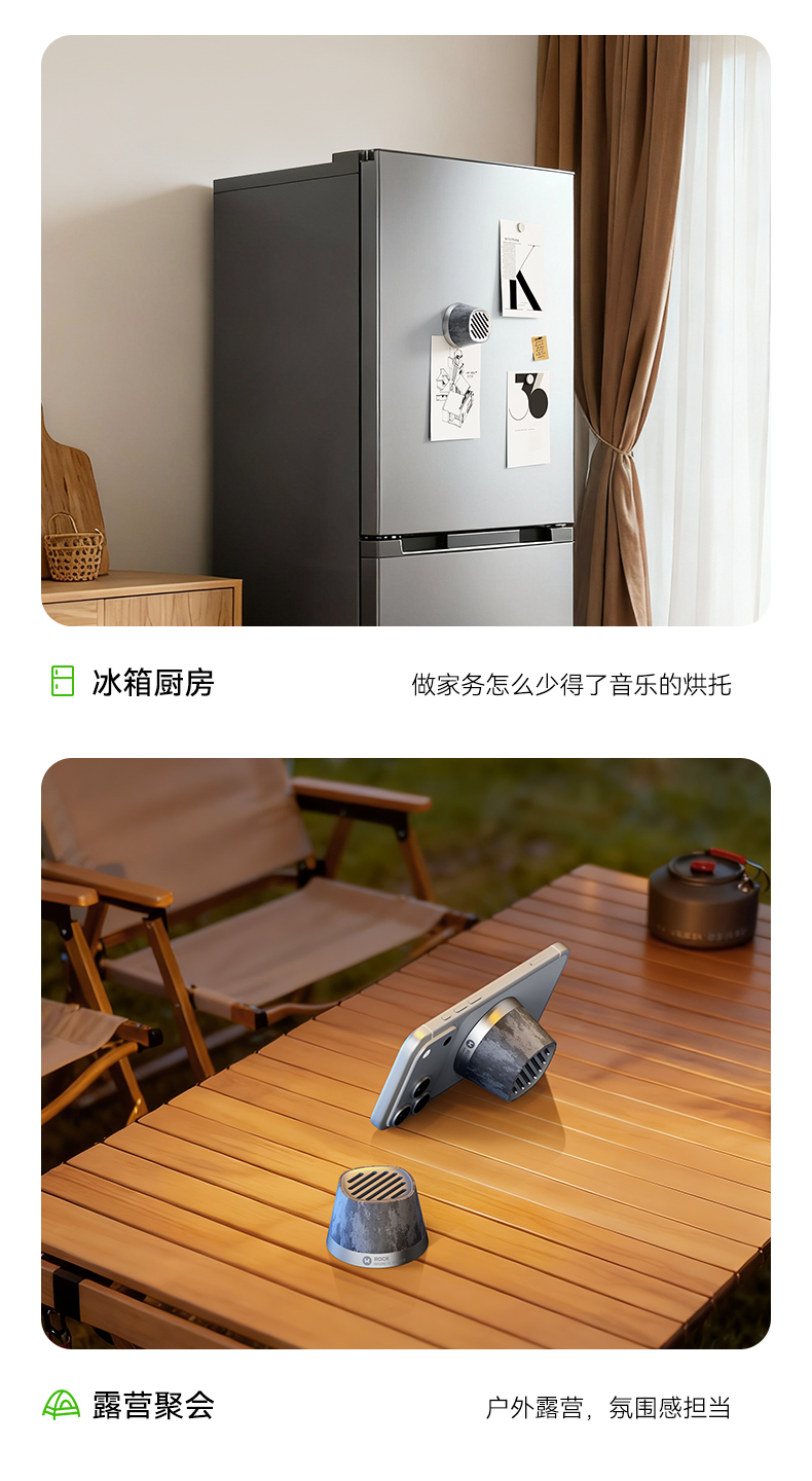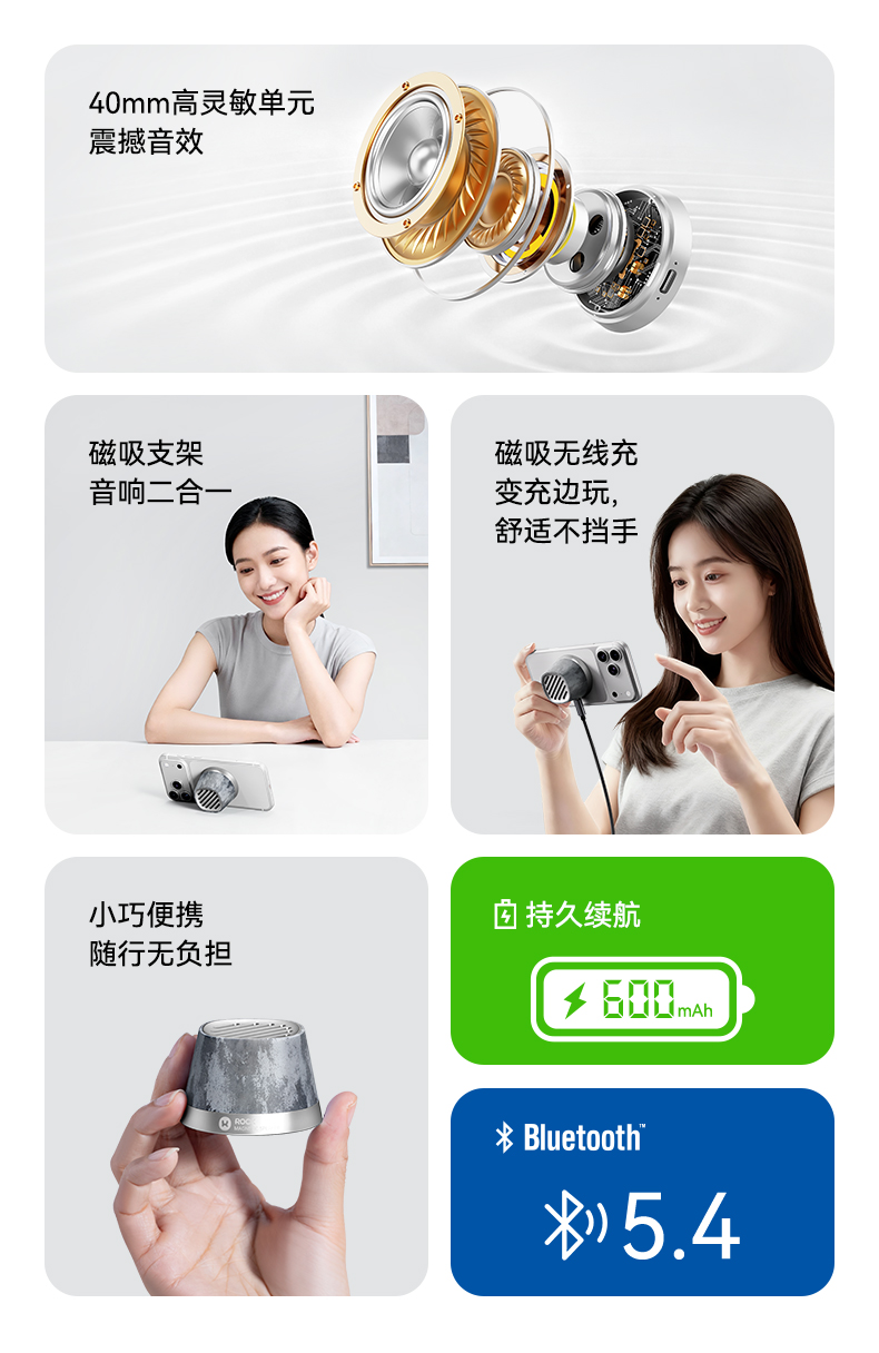 ROCK 玲珑磁吸无线充蓝牙音箱 K13Pro 电芯容量:600mAh 灰色(单位:个)