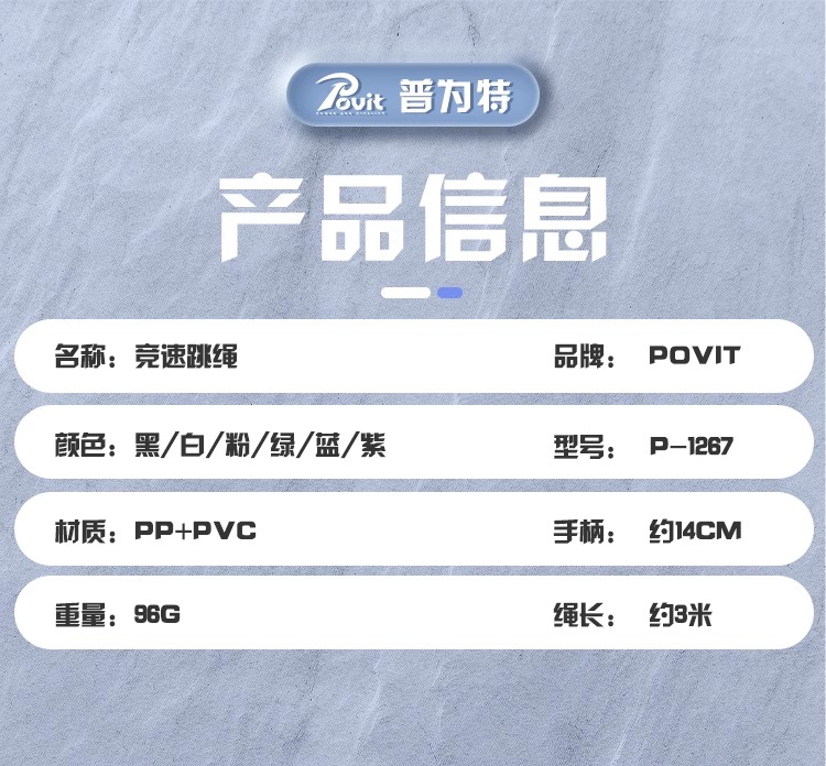 普为特(POVIT) PVC速度跳绳成人健身儿童学生体育跳绳 P-1267PK 96g 粉色(单位:条)