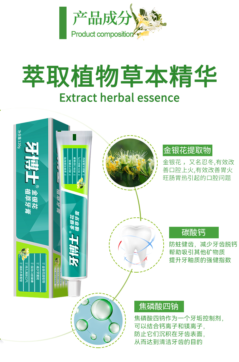 牙博士 牙膏 金银花植萃 120g*2支+牙刷*2支 白色(单位:组)