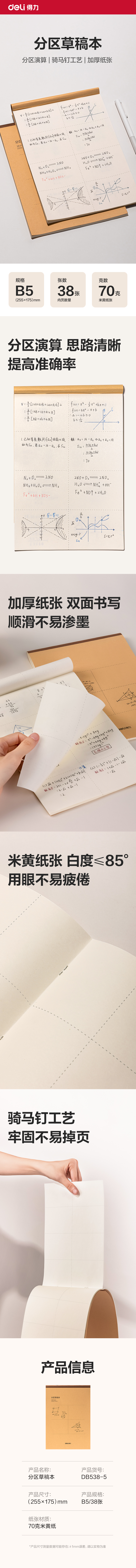 得力(deli) 骑马钉本(分区草稿本) DB538-5 5本/包 黄色(单位:包)
