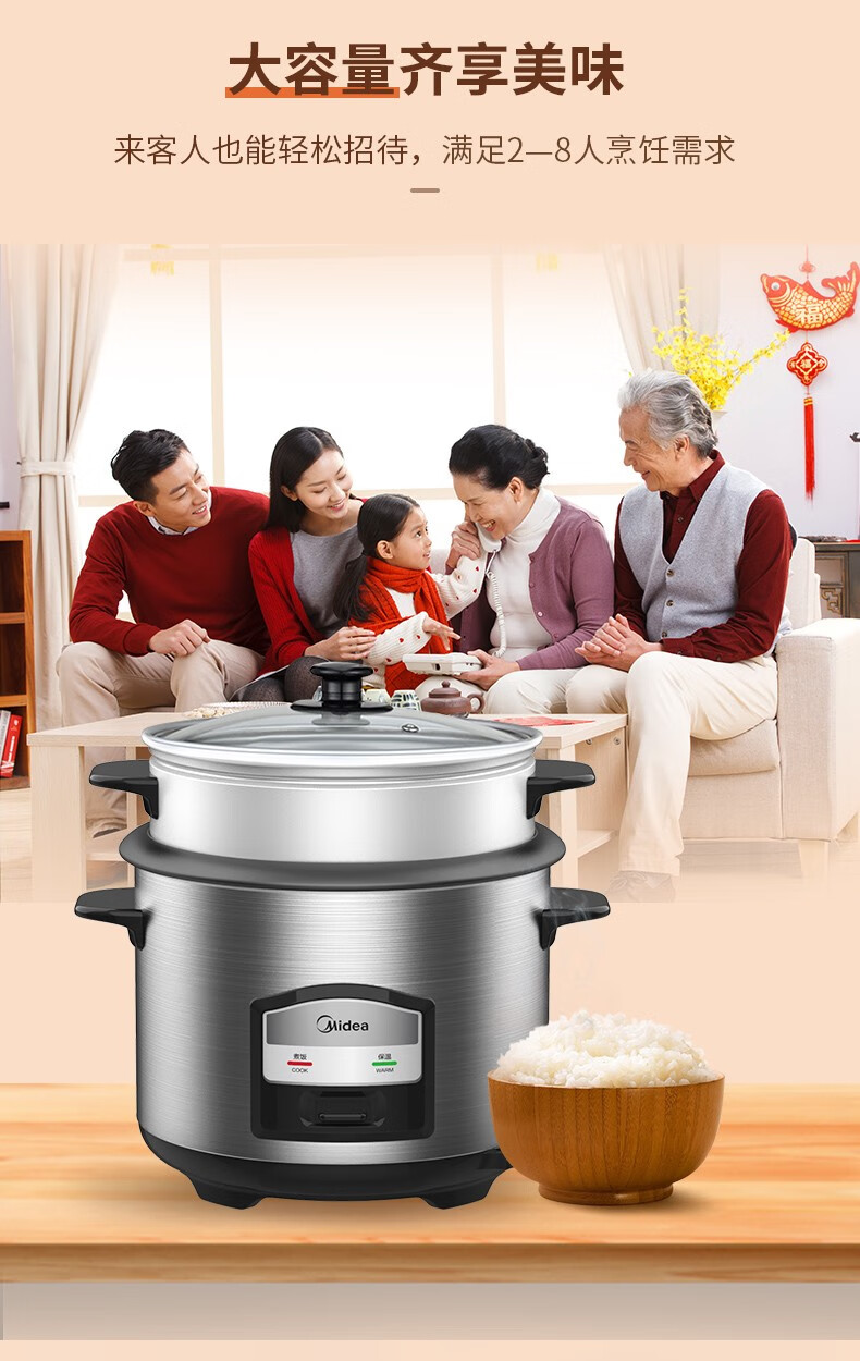 美的(Midea)电饭煲电饭锅 6L容量 机械MG-AFG6570(单位:台) 不锈钢色