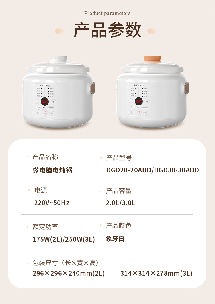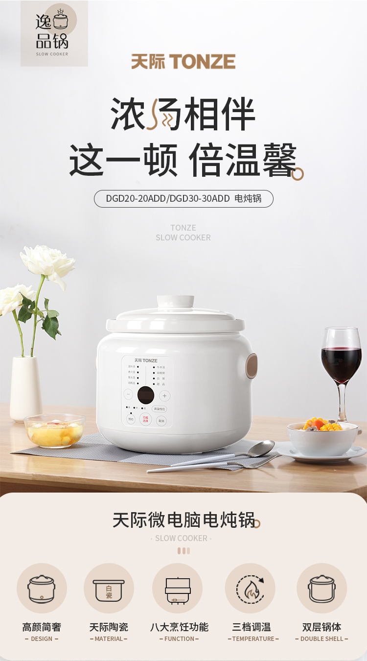 天际(TONZE) 电炖锅DGD20-20ADD/30-30ADD DGD30-30ADD 3L 无香型(单位:台)