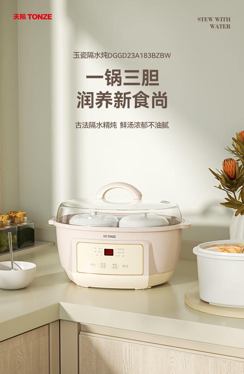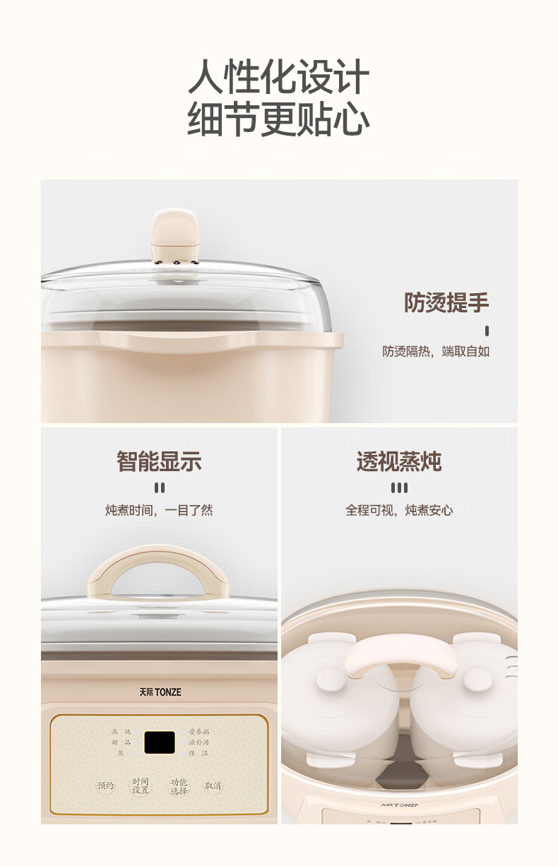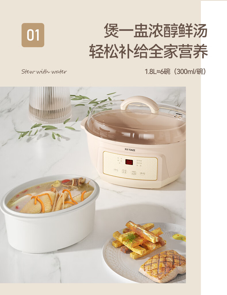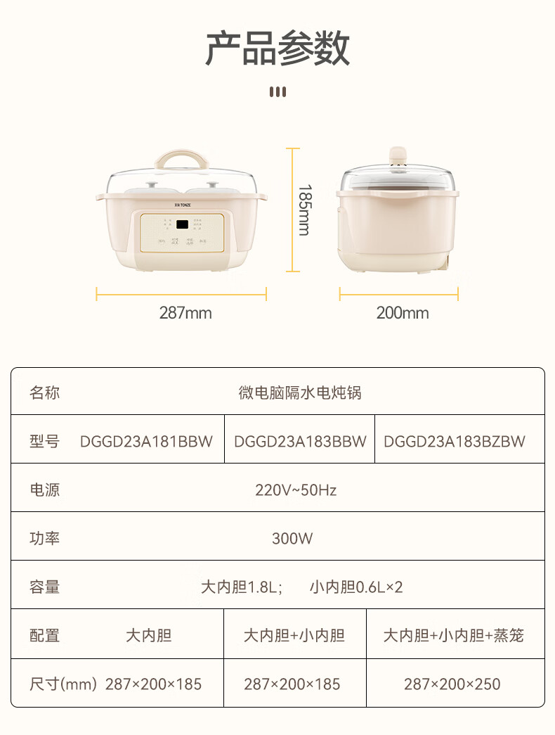 天际(TONZE) 电炖锅DGGD23A183BBW DGGD23A183BBW 1.8L+0.65 无色(单位:个)