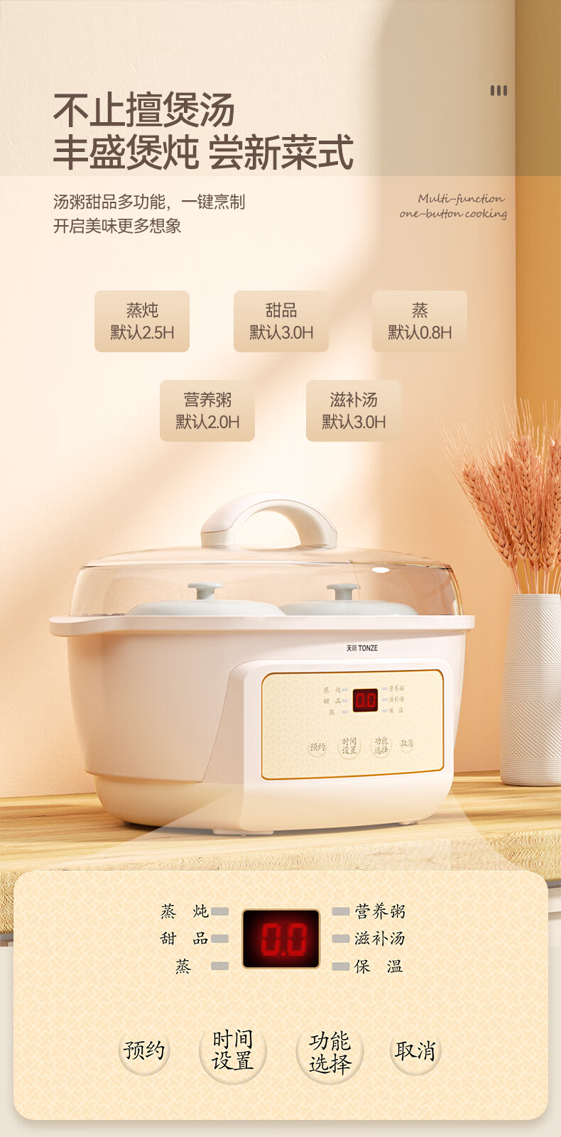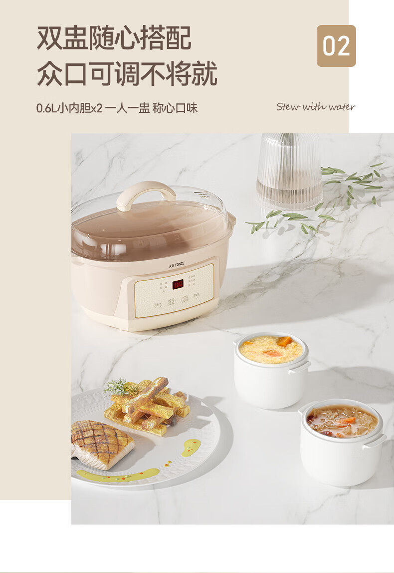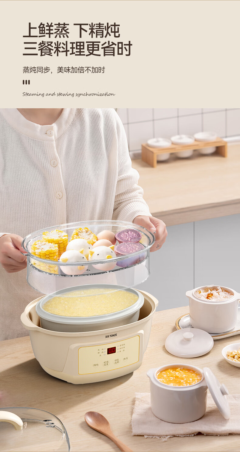 天际(TONZE) 电炖锅DGGD23A183BBW DGGD23A183BBW 1.8L+0.65 无色(单位:个)