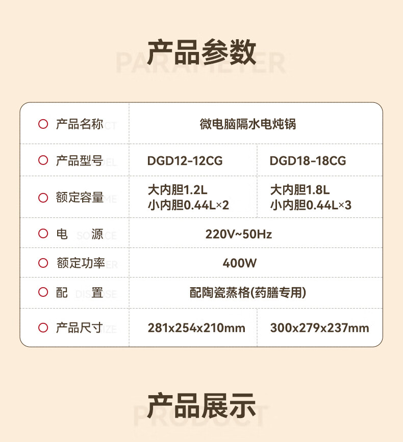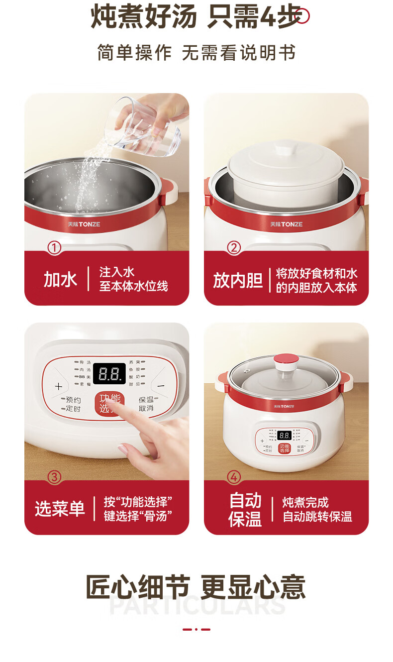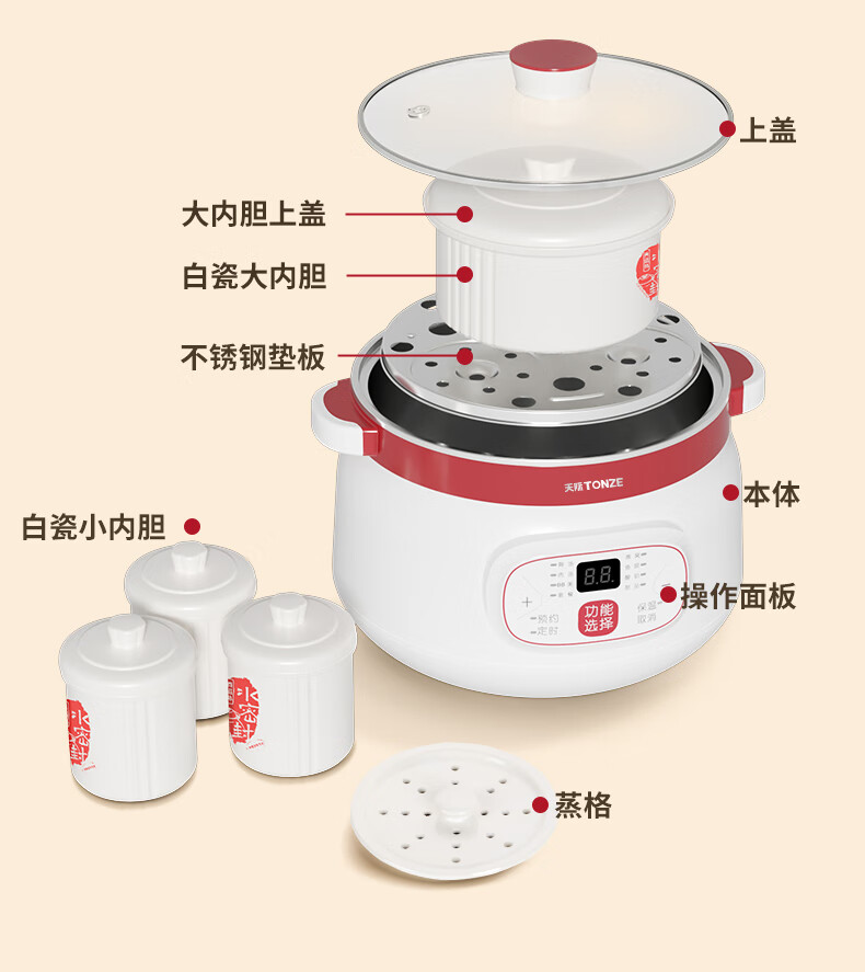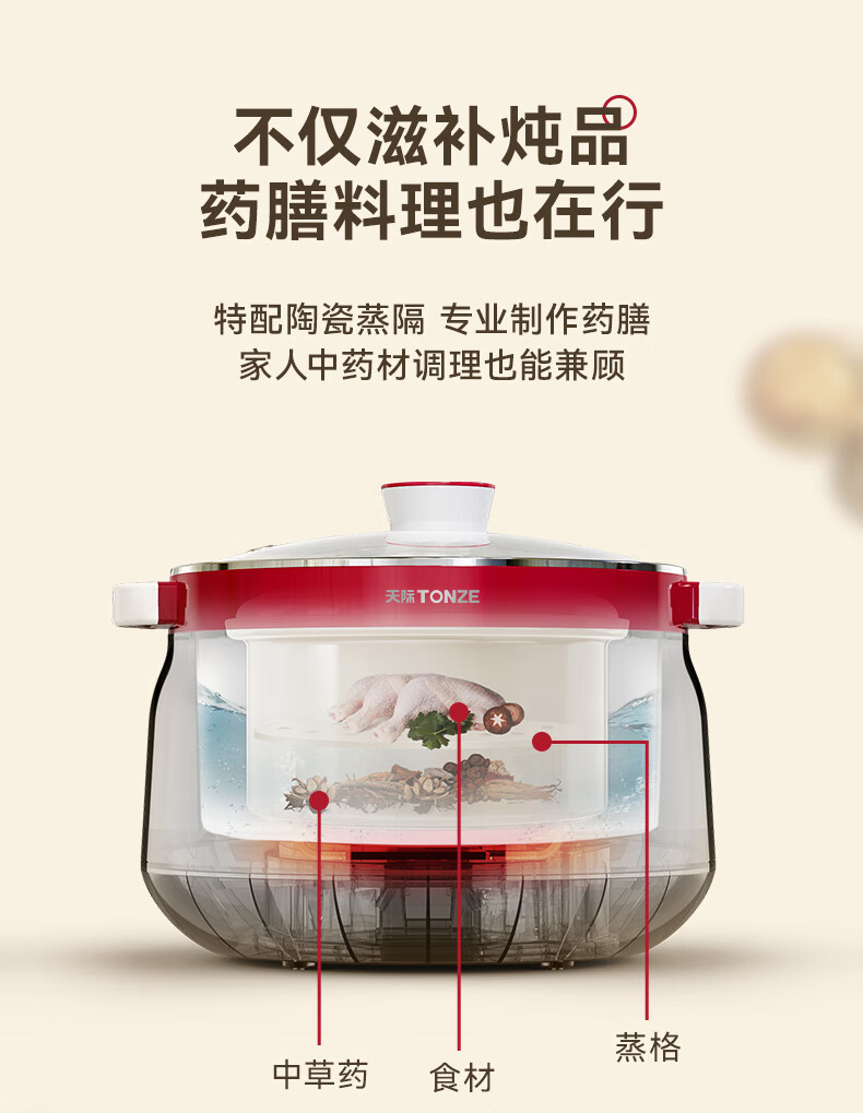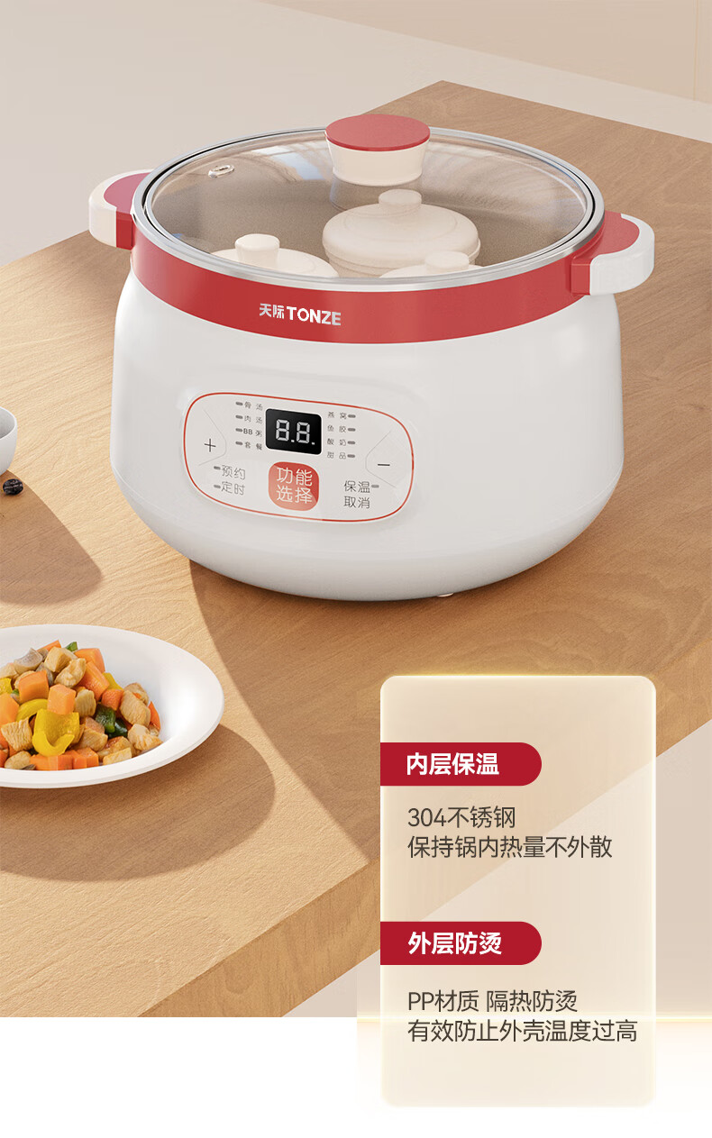 天际(TONZE) 隔水炖DGD12-12CG/18-18CG DGD12-12CG 1.2L 无色(单位:台)