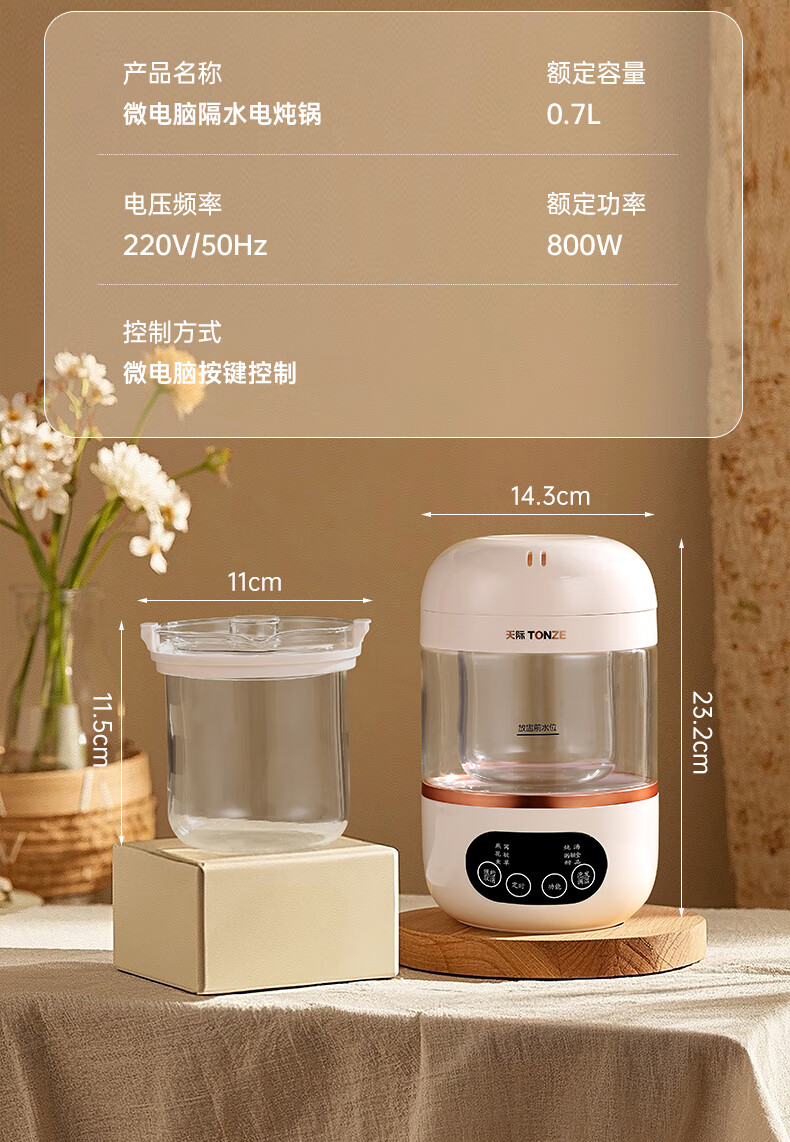 天际(TONZE) 燕窝机YWJ-07YW DGD7-07YW 0.7L 无色(单位:个)