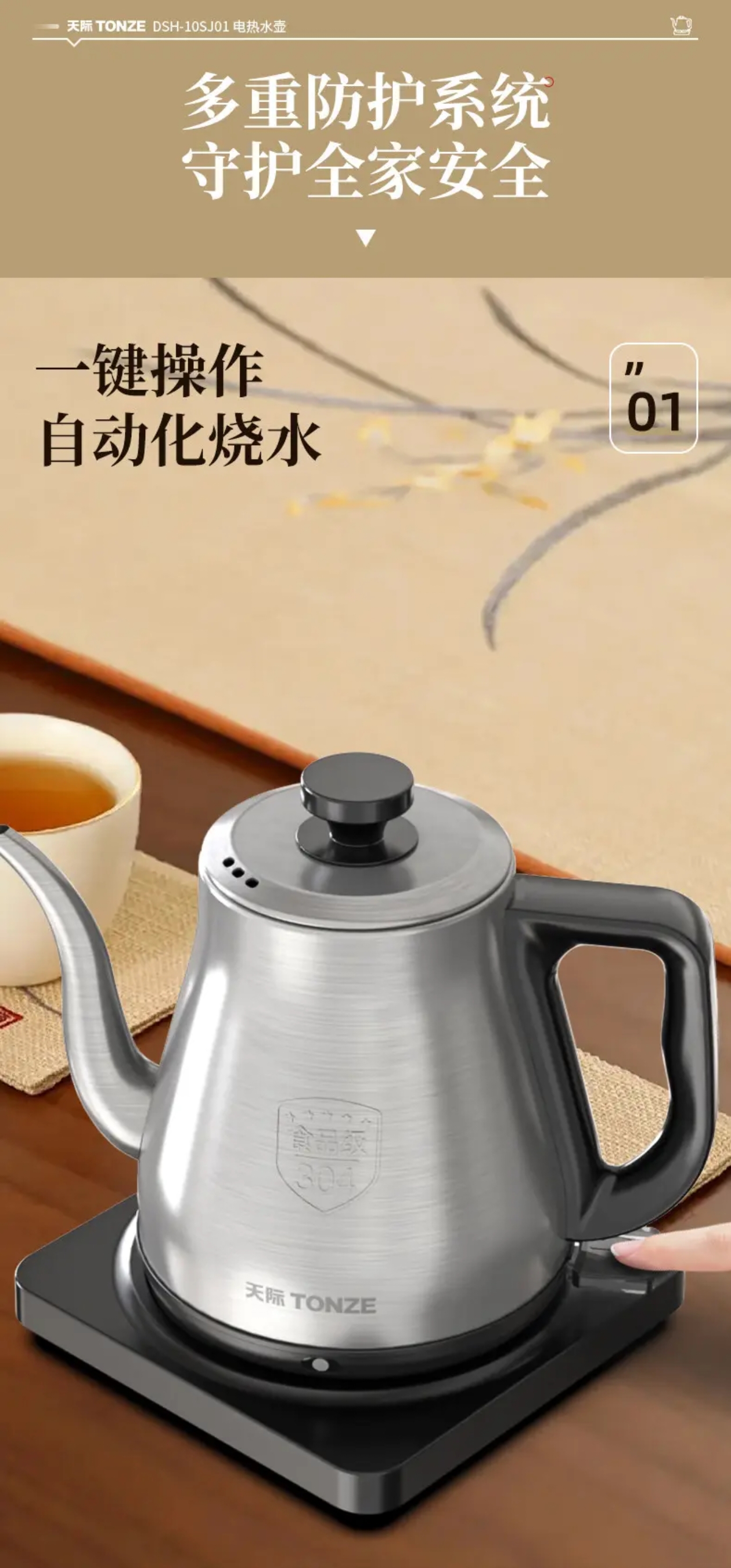 天际(TONZE) 电水壶DSH-10SJ01 DSH-10SJ01 1L 无色(单位:个)