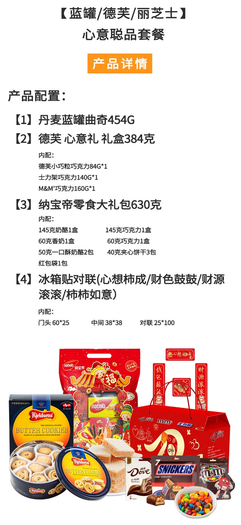 蓝罐(Kjeldsens) /德芙/丽芝士-曲奇巧克力零食 心意聪品礼包 1468g 红色(单位:套)