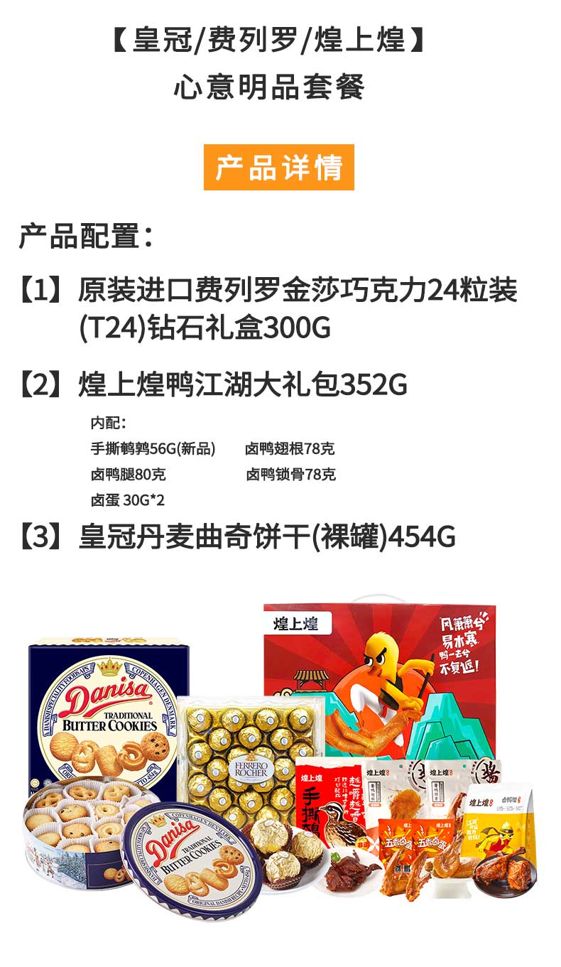 皇冠(danisa) /费列罗/煌上煌-曲奇巧克力卤味 心意明品组合 1106g 红色(单位:套)