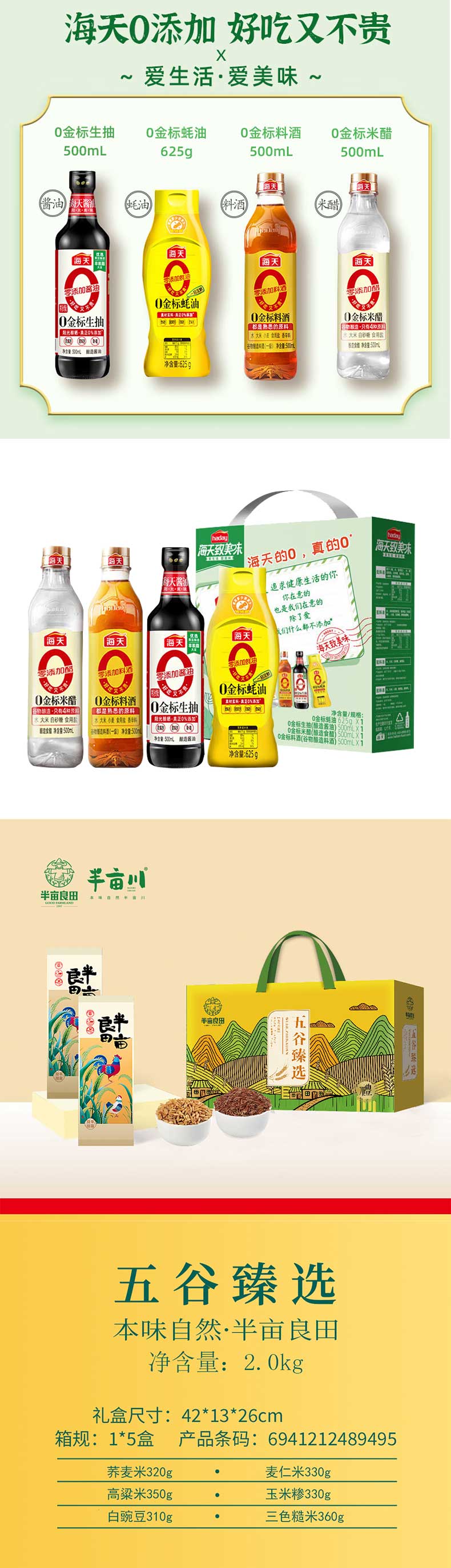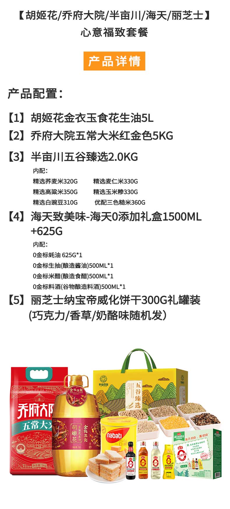 胡姬花 /乔府大院/半亩川/海天/丽芝士-粮油调味饼干 心意福致组合 7925g+6.5L 红色(单位:套)