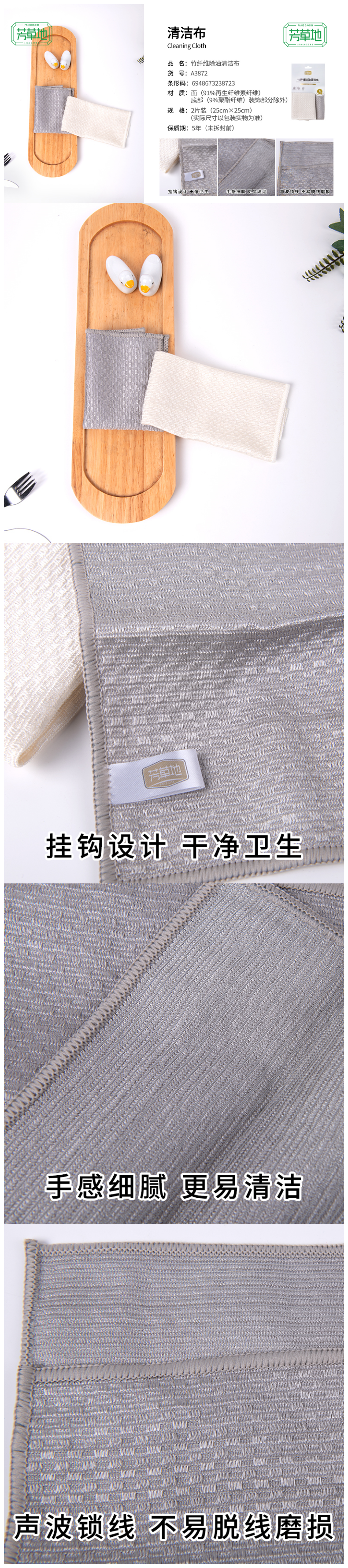 芳草地 清洁抹布 A38723FCD 2片/袋*2 白色(单位:组)
