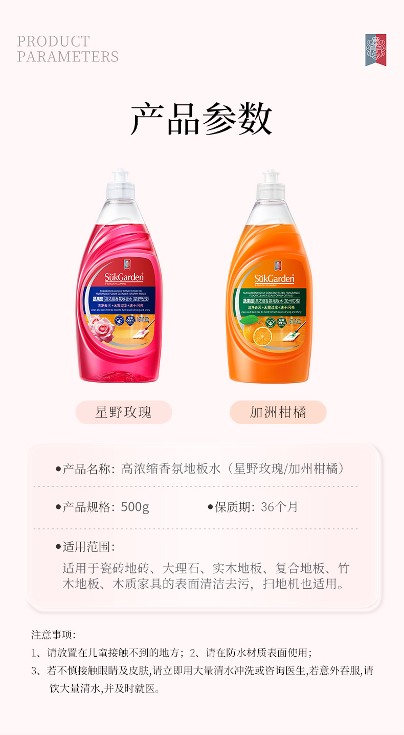 蔬果园(SukGarden) 高浓缩香氛 地板水星野玫瑰 500g 佳人粉(单位:瓶)