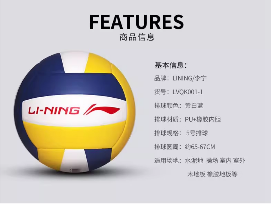 李宁(LI-NING) 比赛软式排球 LVQK001-1 5号 混色 混色(单位:个)