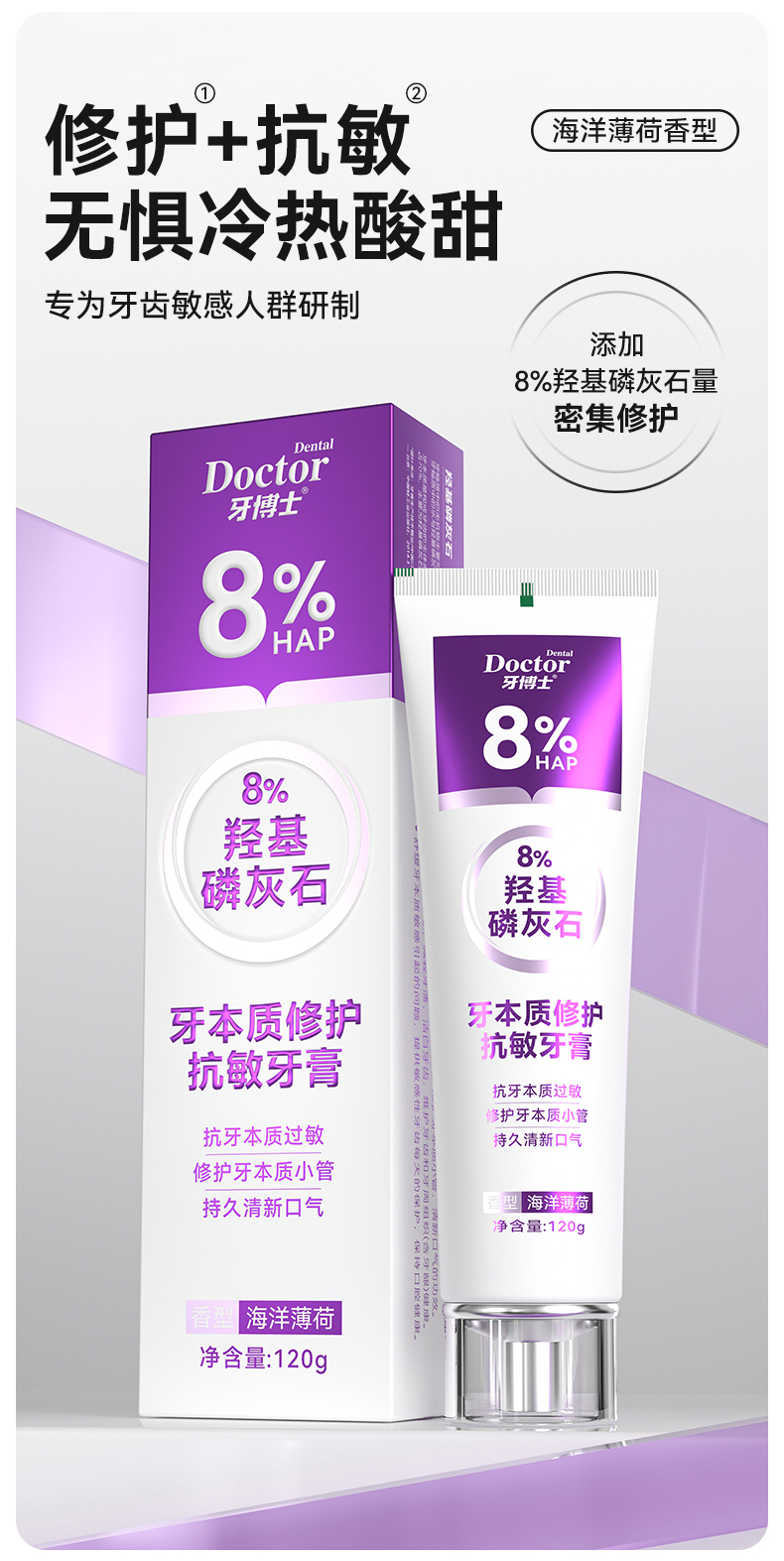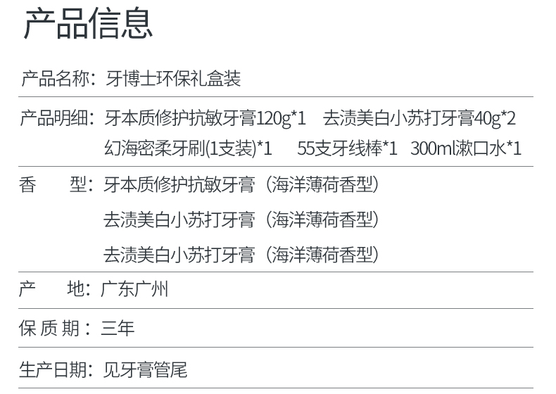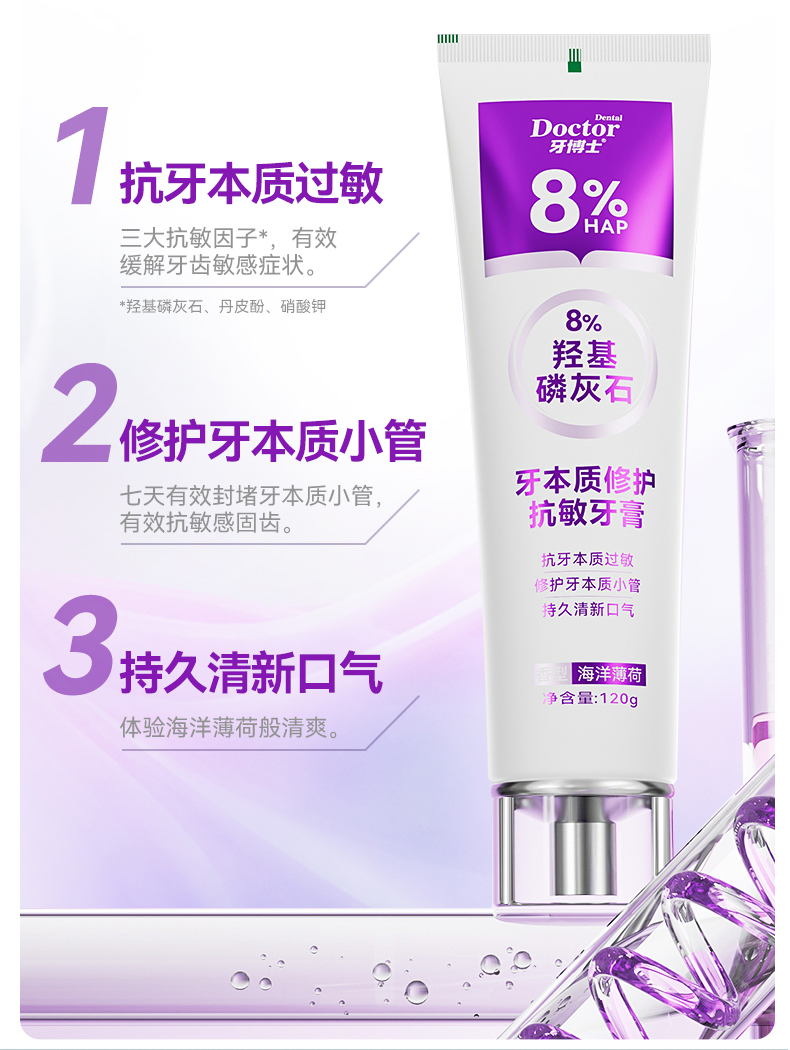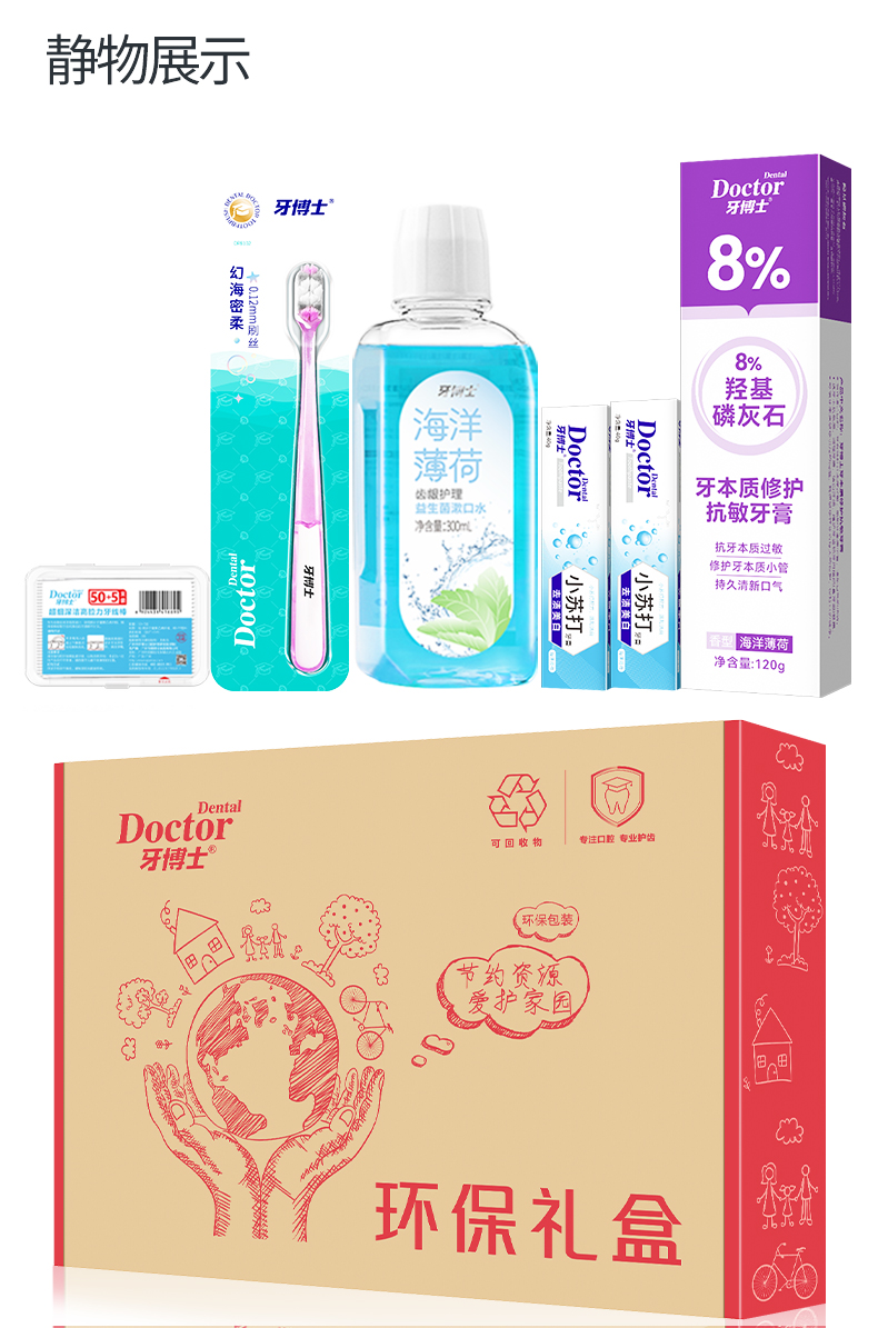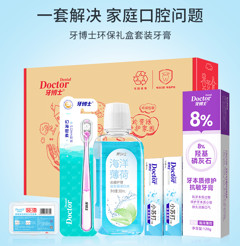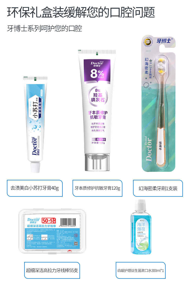 牙博士 牙膏 羟基磷灰石牙本质修护抗敏 200g+漱口水300ml+牙线55支+牙刷*1 白色(单位:套)