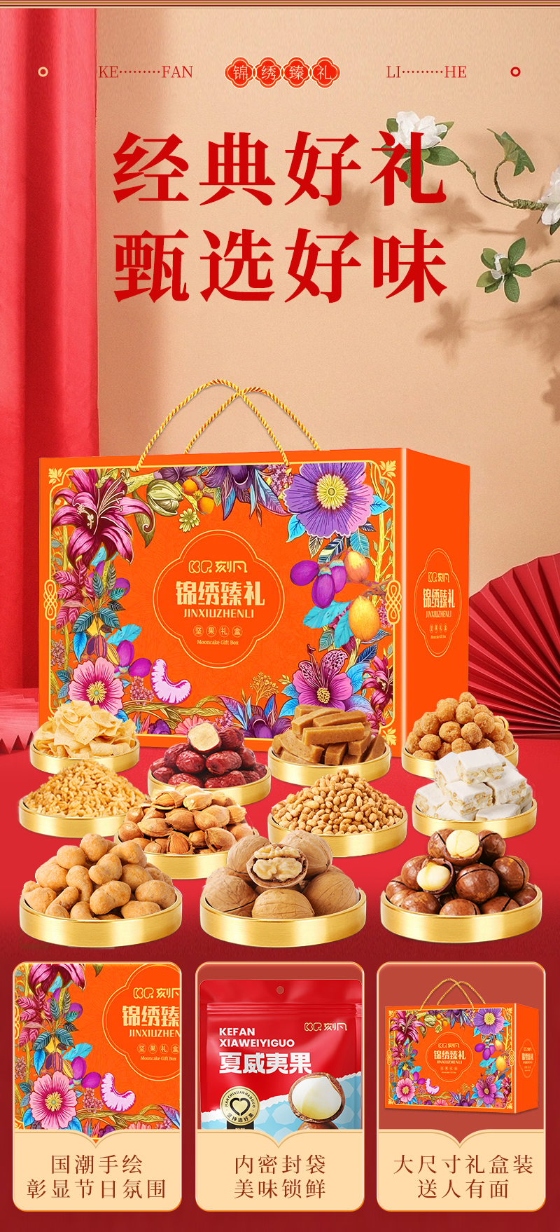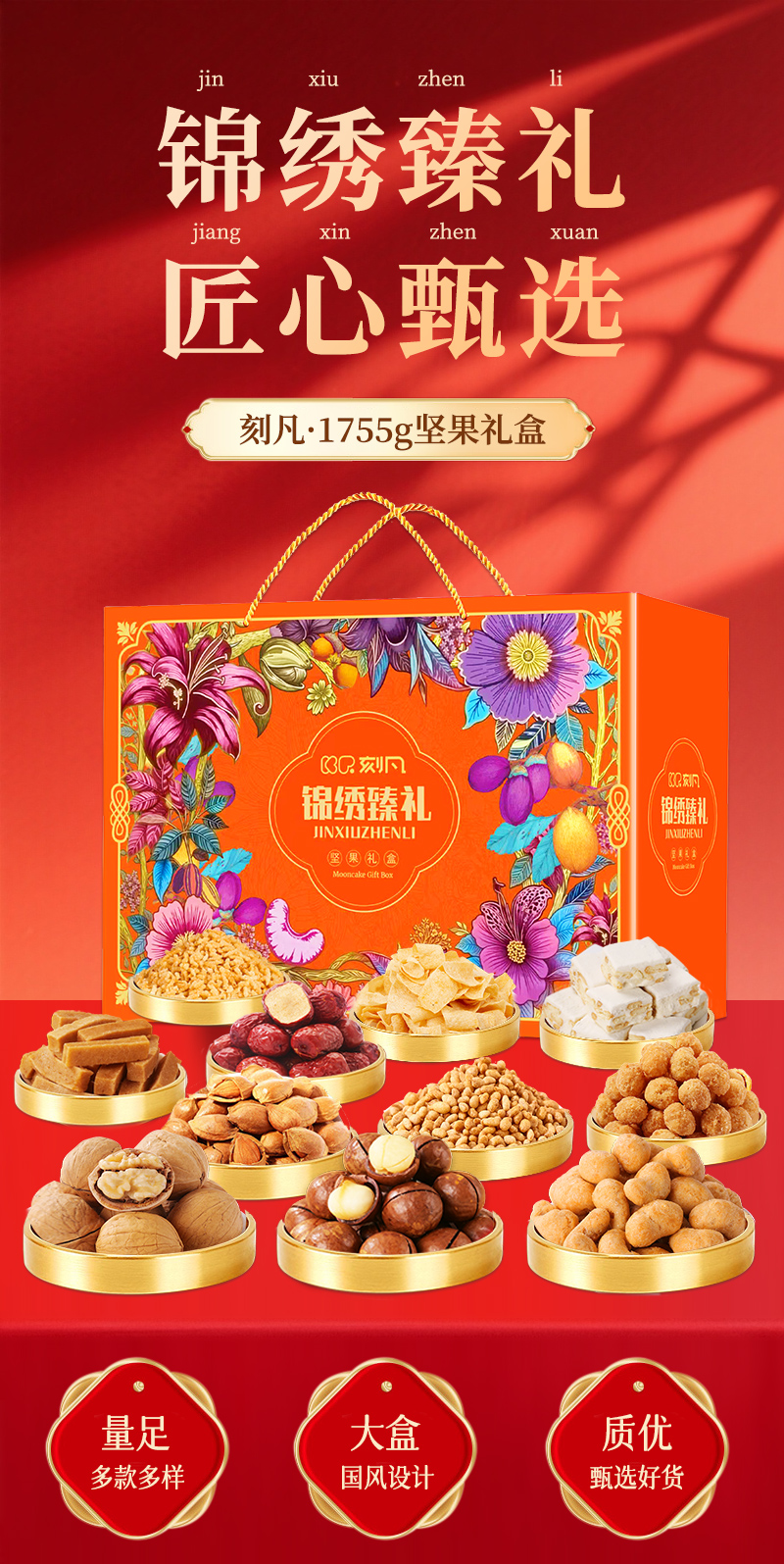 刻凡 坚果礼盒 锦绣臻礼 1755g 炫橙色(单位:盒)