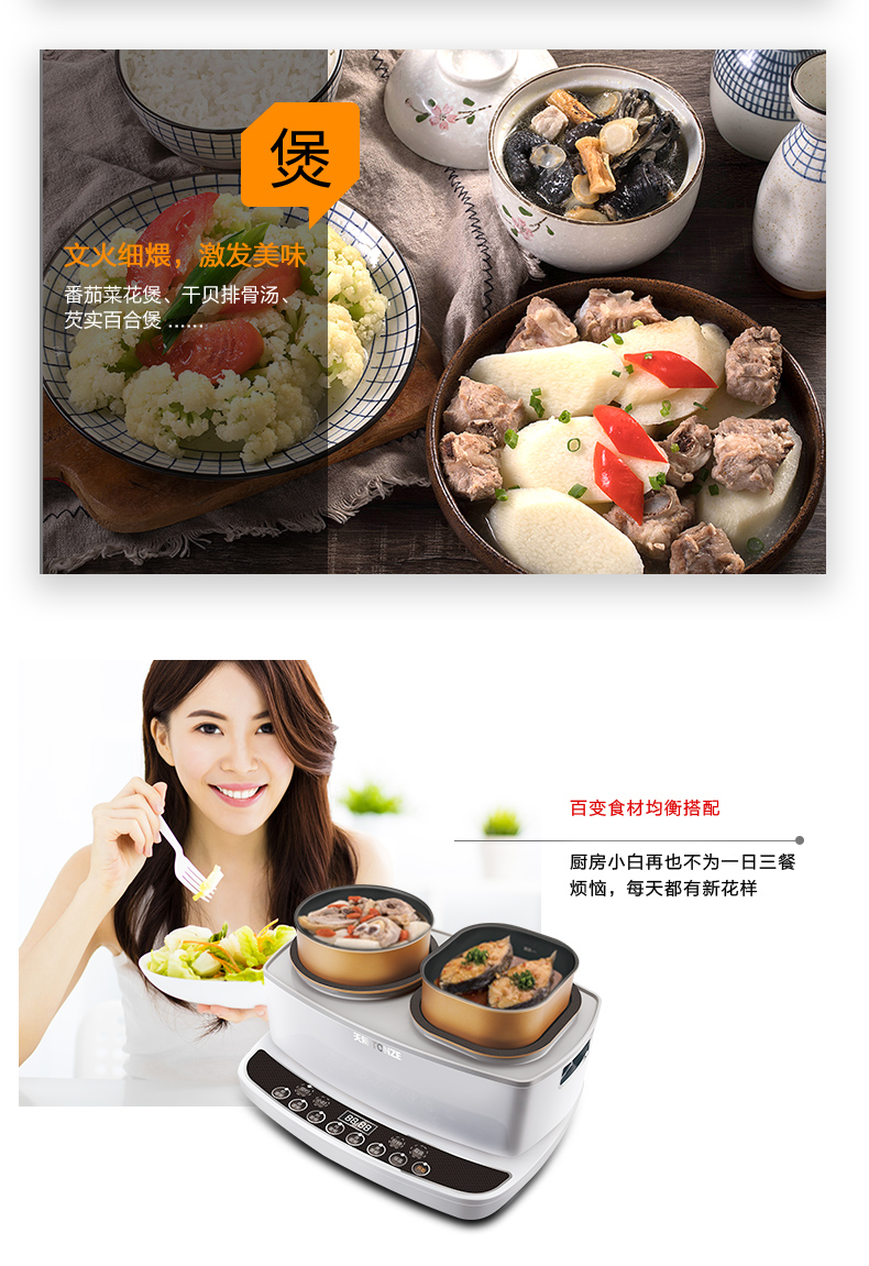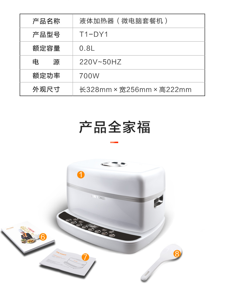 天际(TONZE) 多功能电套餐机T1-DY1 T1-DY1 0.8L 白色(单位:个)