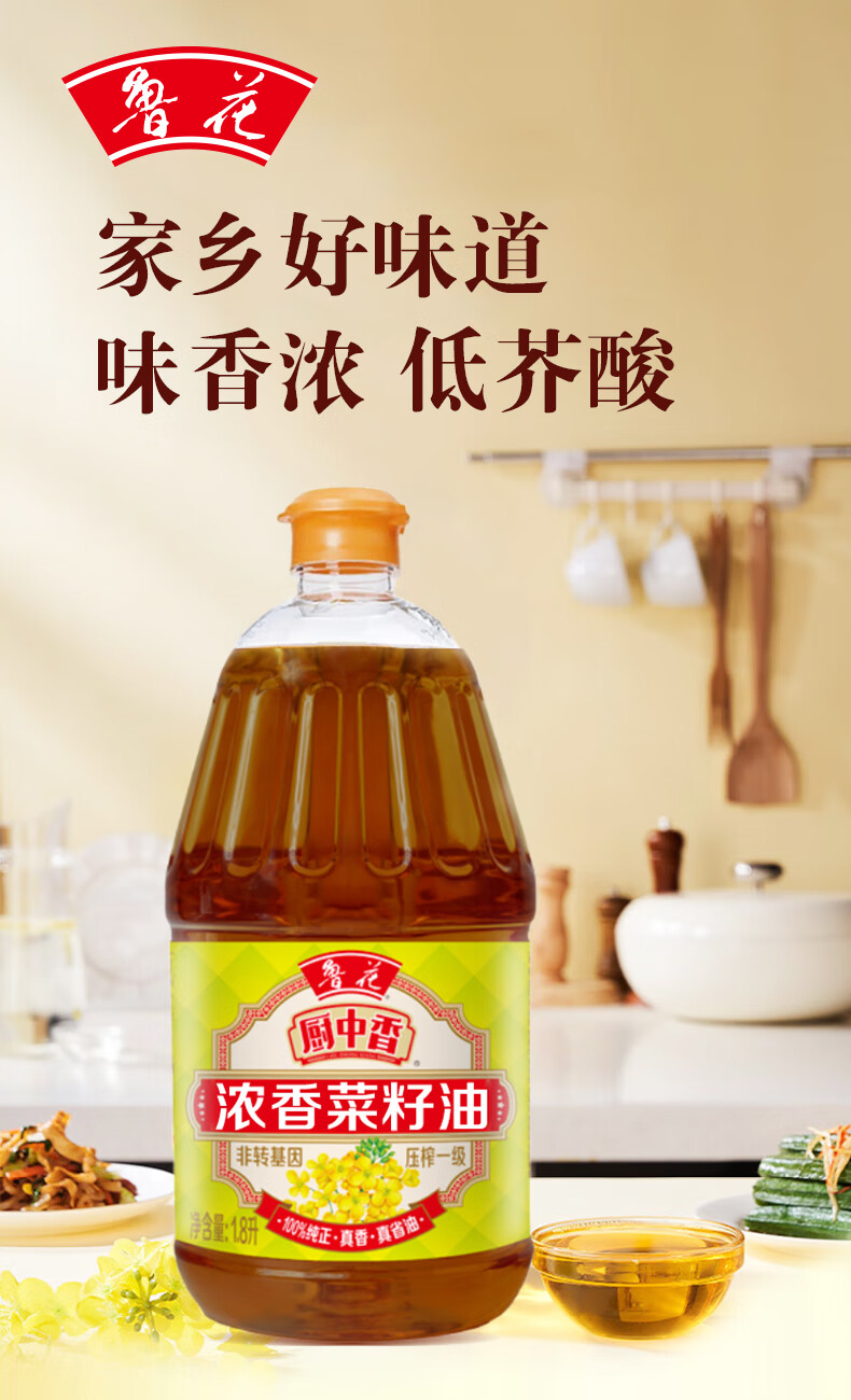 鲁花 浓香菜籽油 非转基因 1.8L 黄色(单位:桶)