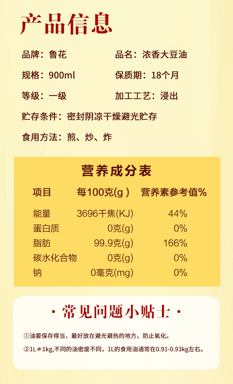 鲁花 浓香大豆油 非转基因 900ml 黄色(单位:瓶)