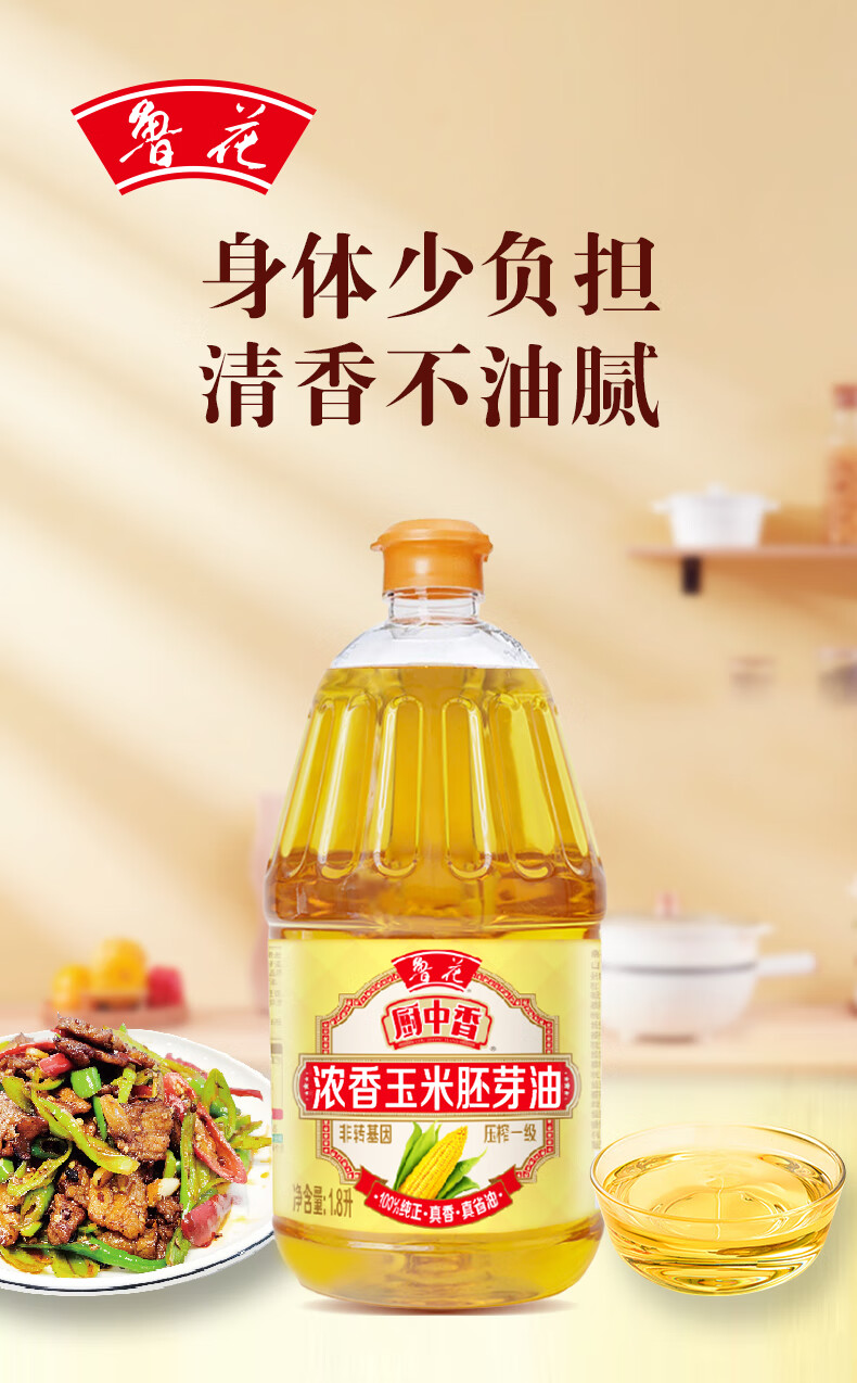 鲁花 浓香玉米胚芽油 非转基因 1.8L 黄色(单位:桶)