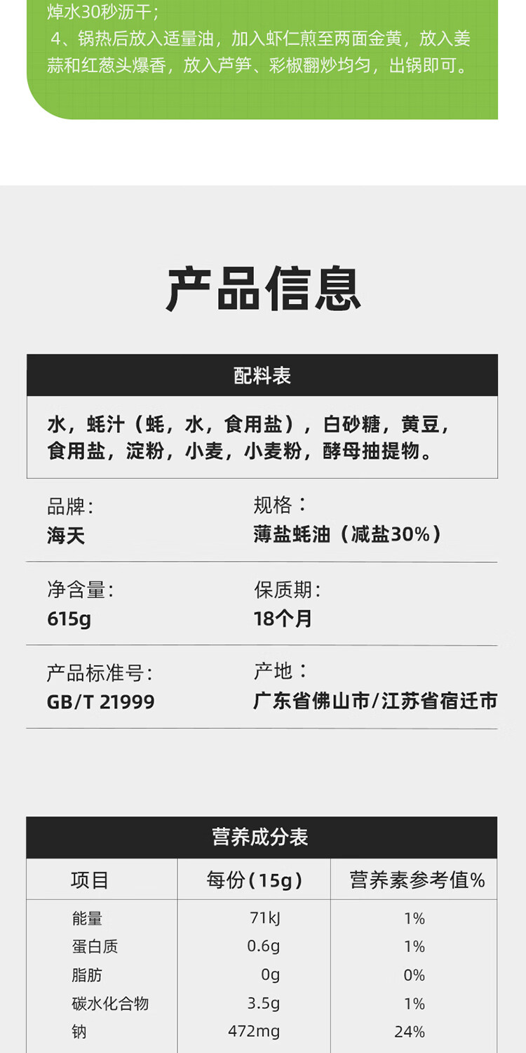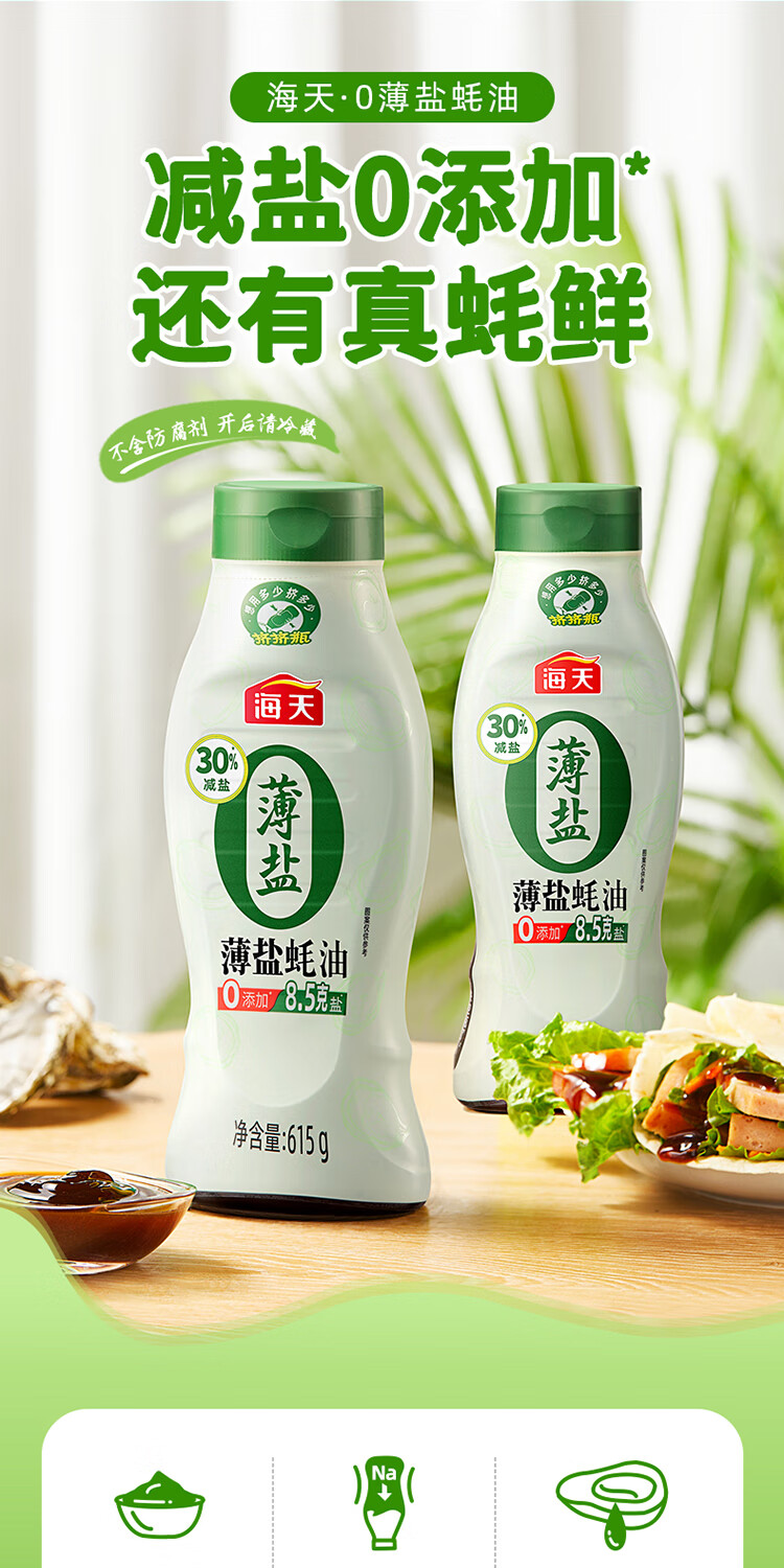 海天 薄盐蚝油 零添加 615g 绿色(单位:瓶)