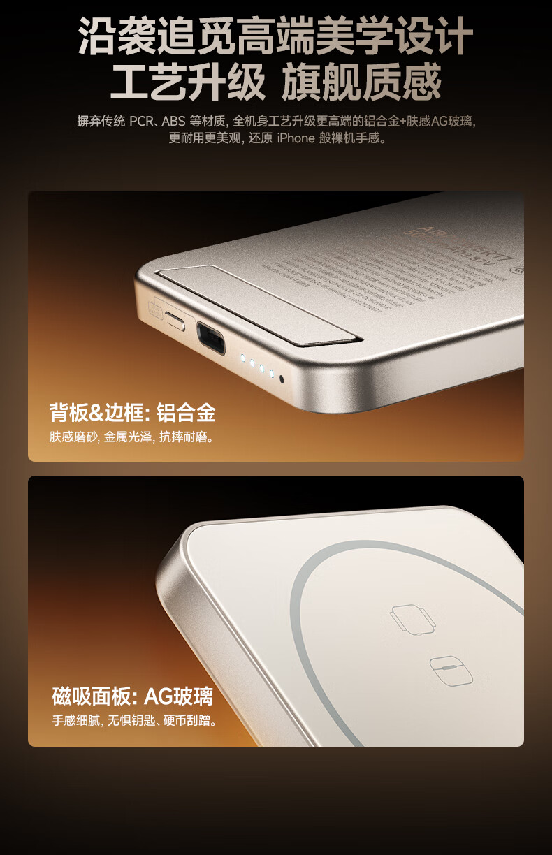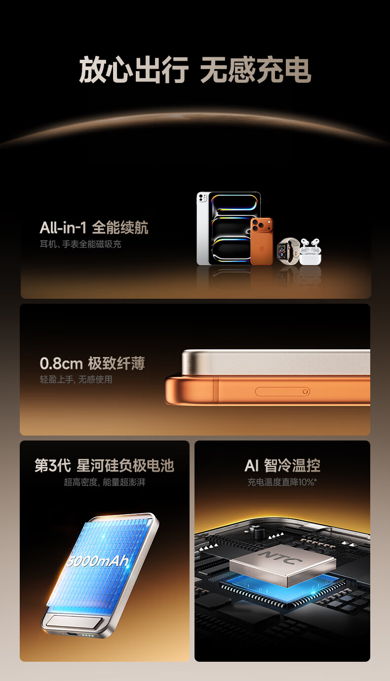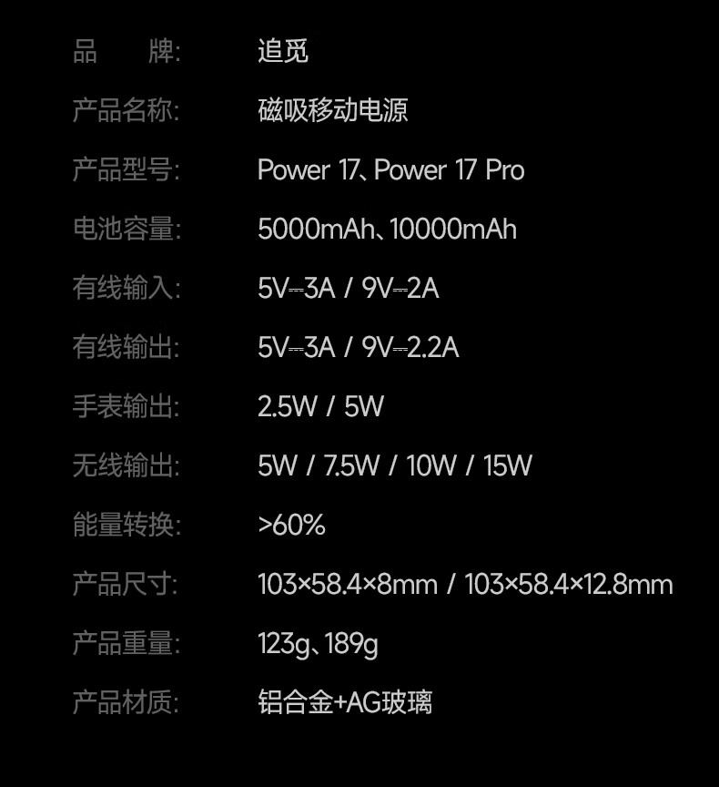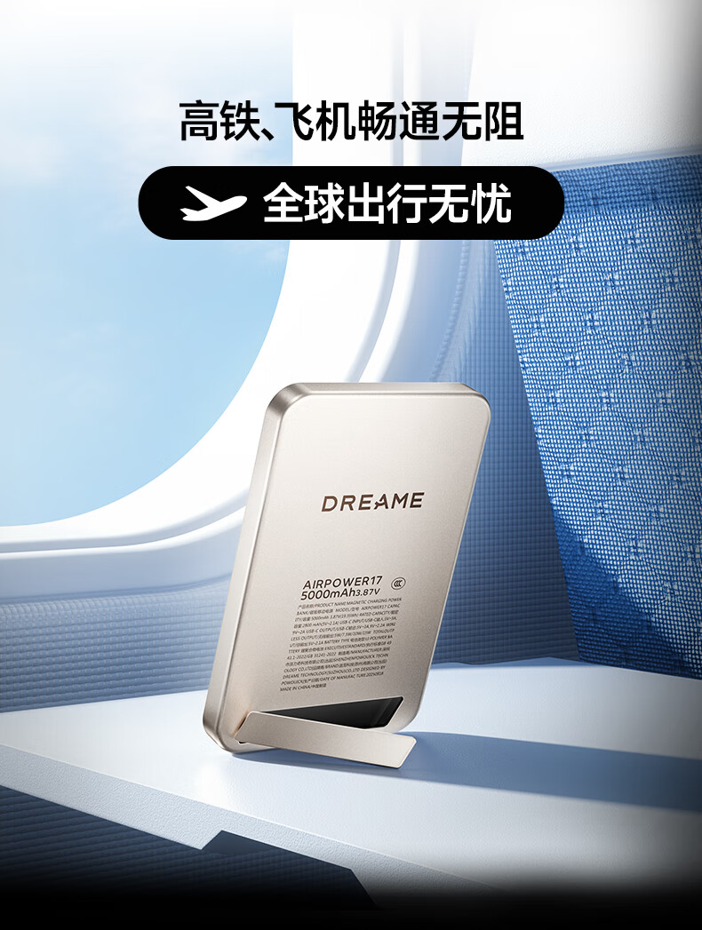 追觅 3C认证可上飞机磁吸小巧便携超薄移动电源 AIR POWER17 5000毫安 金属色(单位:个)