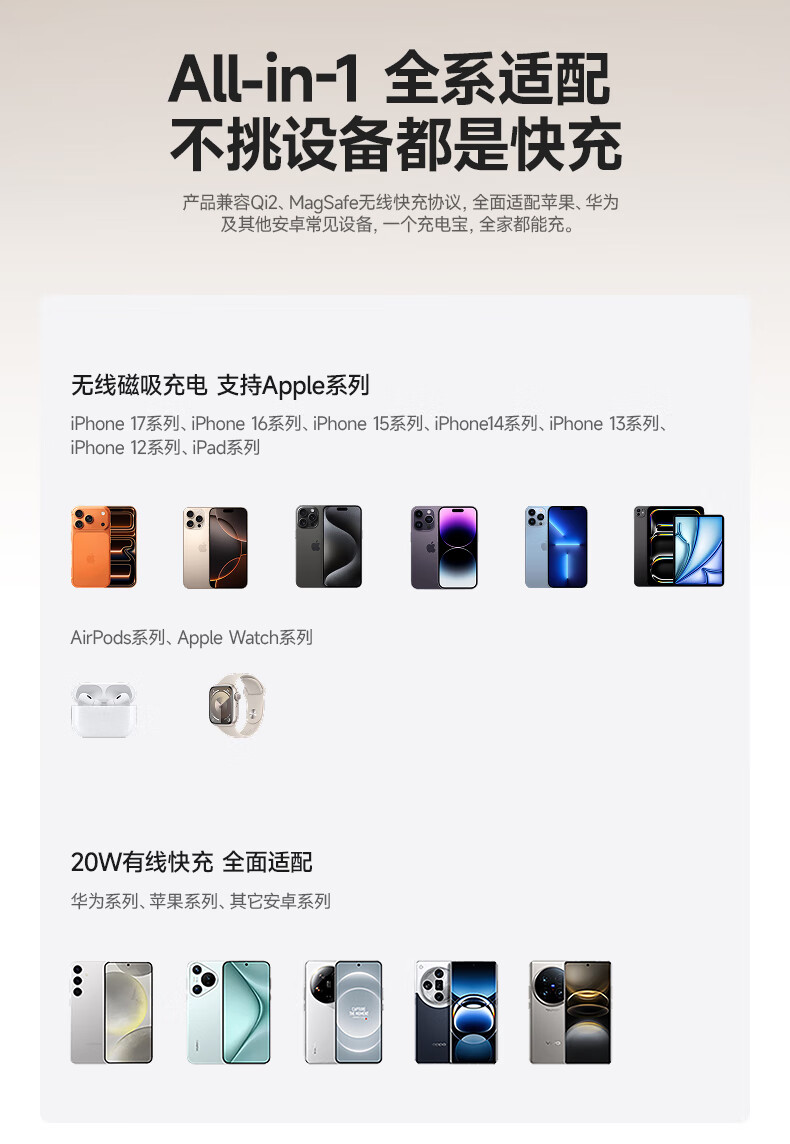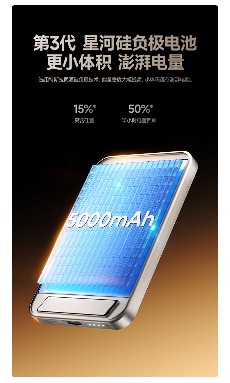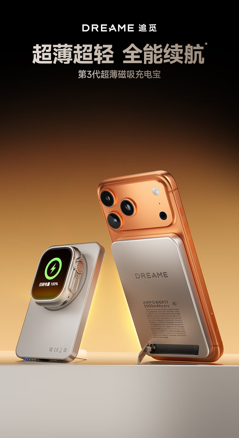 追觅 3C认证可上飞机磁吸小巧便携超薄移动电源 AIR POWER17 5000毫安 金属色(单位:个)