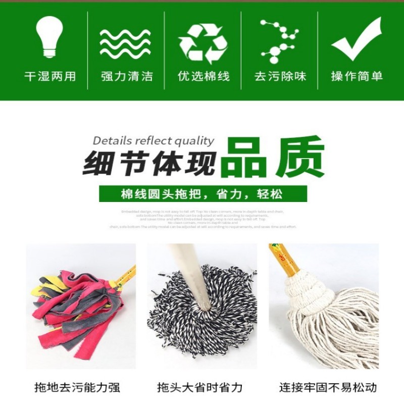 驰色 3934-白丁条黄杆圆头拖把 CS-CT 297 把 自然色(单位:把)