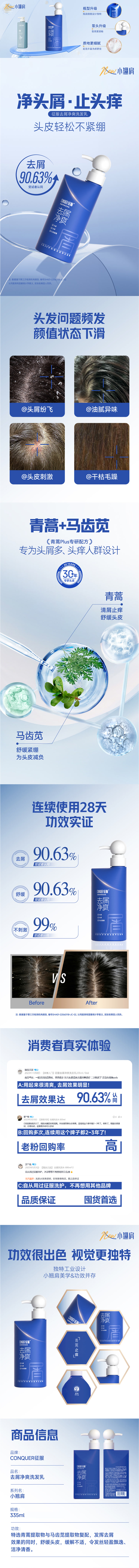 征服 洗发乳 去屑净爽 335ml 宝石蓝(单位:瓶)