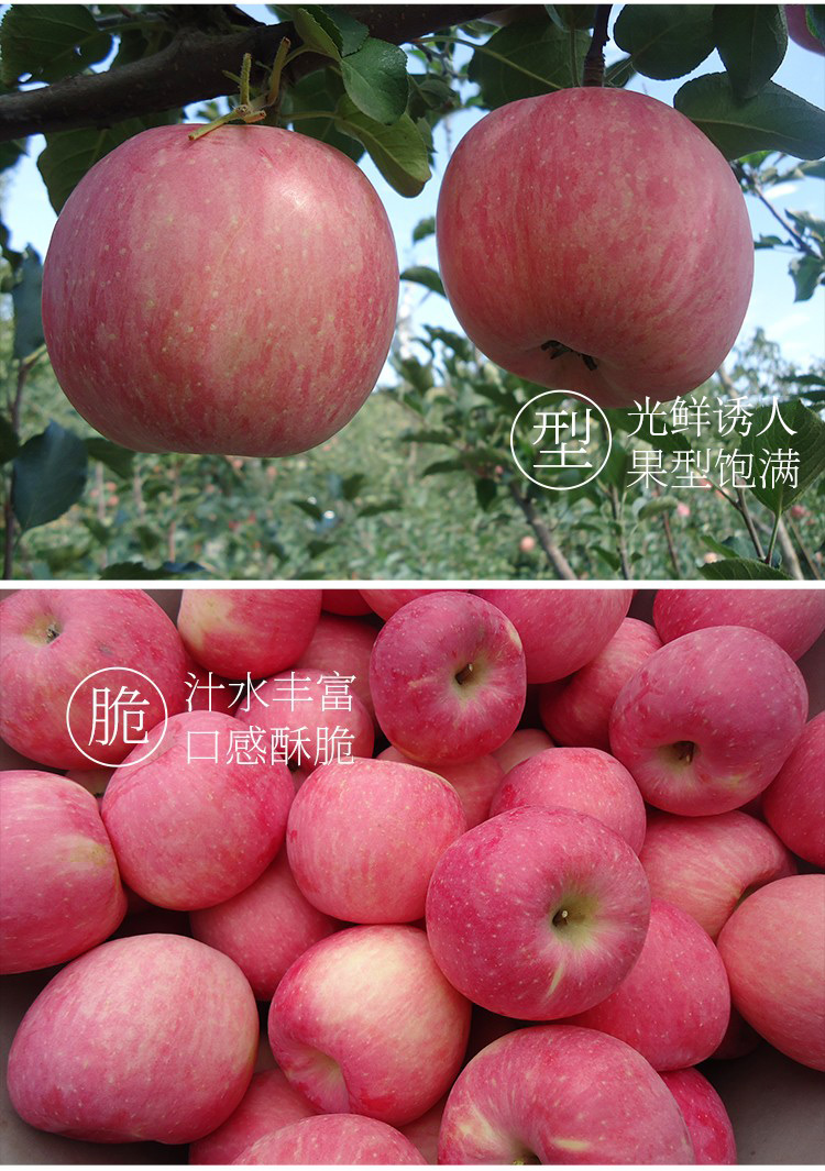 食欲跳动 皮薄多汁 清脆可口 山东烟台红富士 7-7.5斤礼盒(单果约80mm+) 红色(单位:盒)