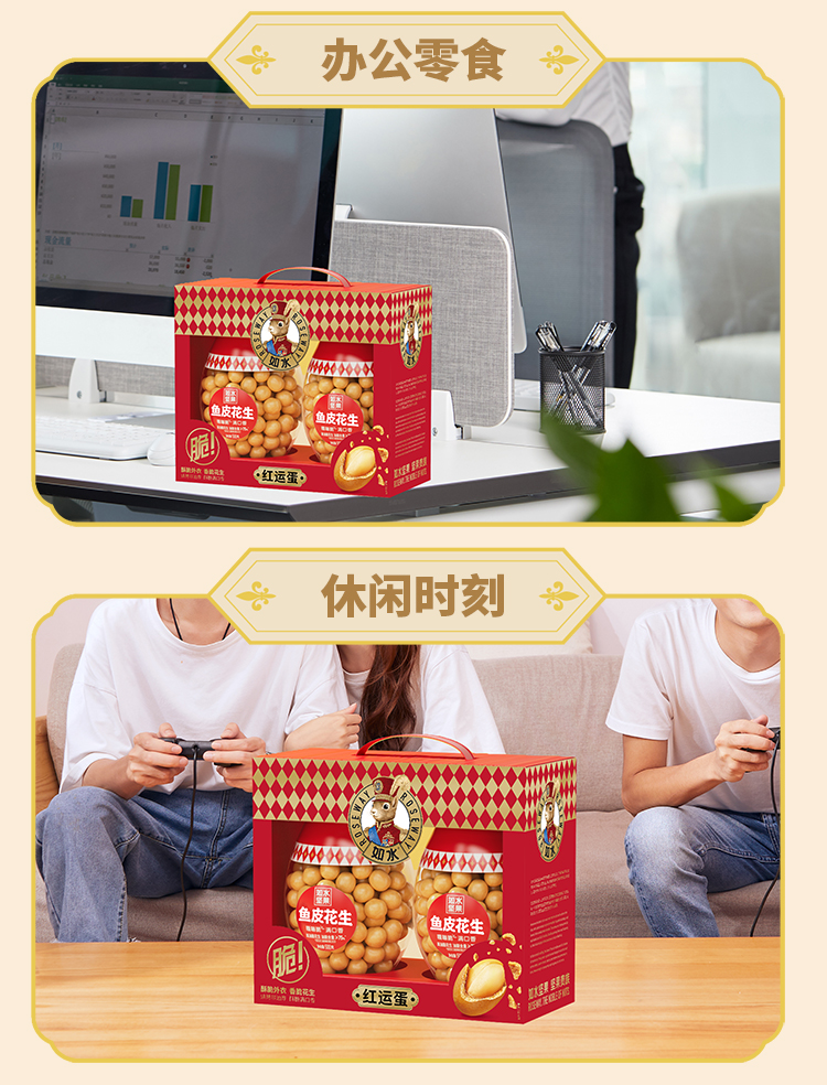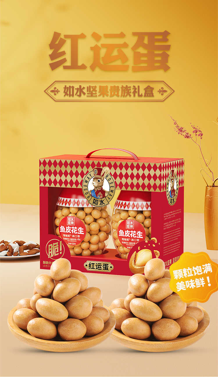 如水 红运蛋 鱼皮花生礼盒 1kg 红色(单位:盒)